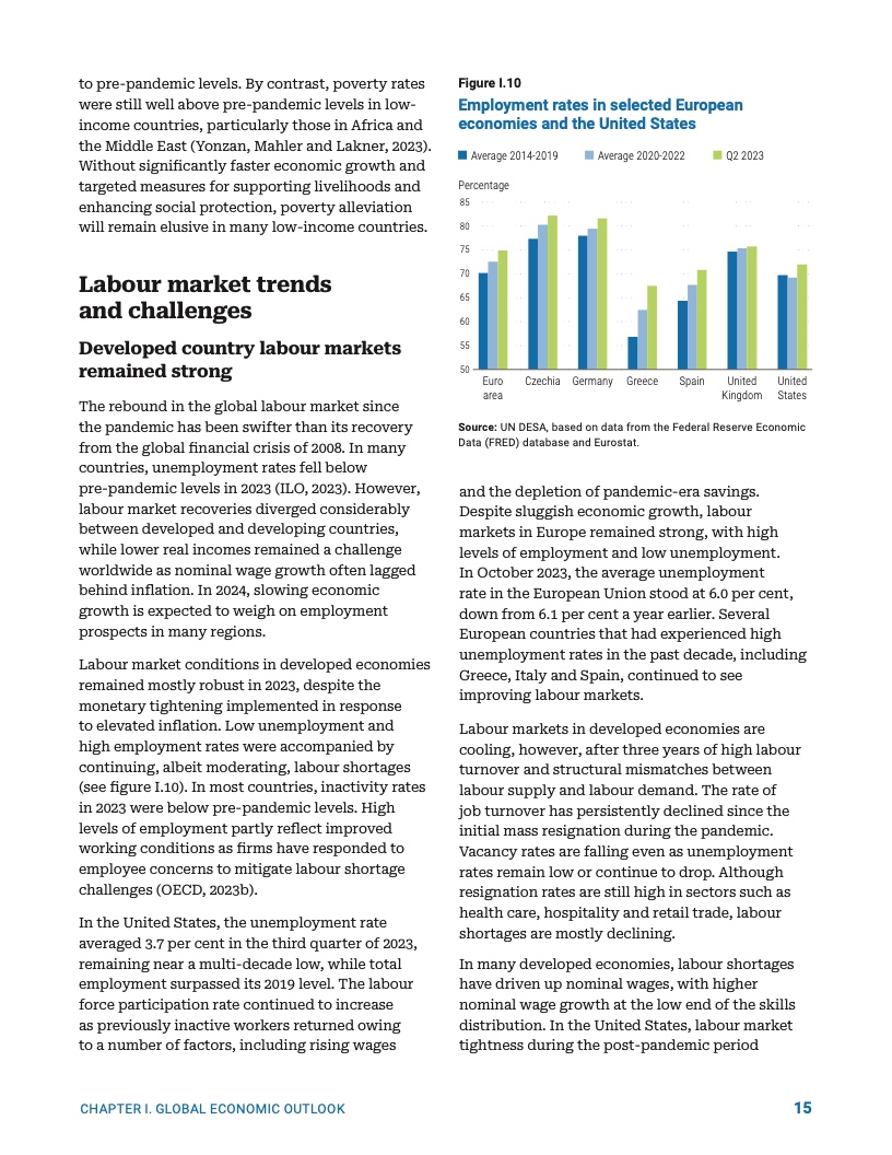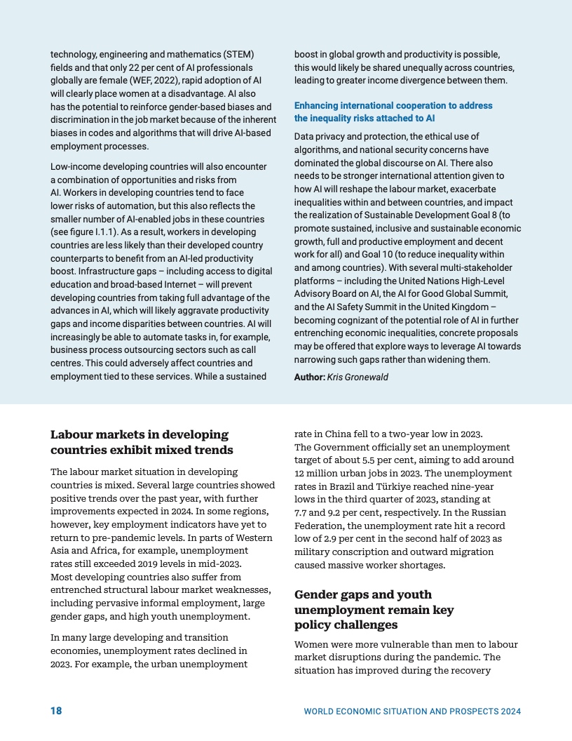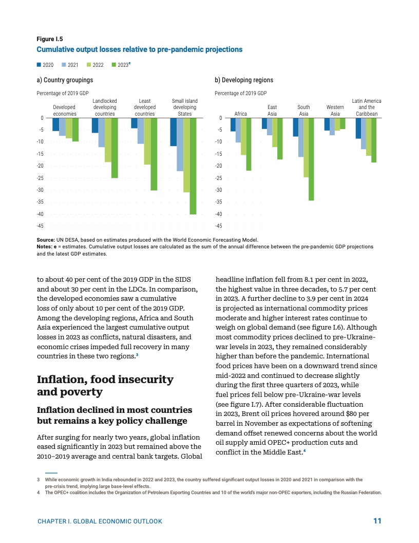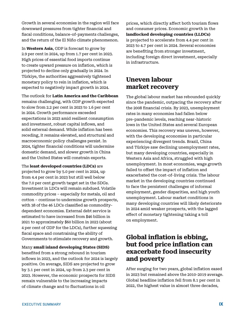 与此同时,许多发展中国家,特别是东亚、西亚、拉丁美洲和加勒比地区的发展中国家,面临金融条件收紧、财政空间缩小、外部需求疲软的问题,其短期增长前景也在恶化。