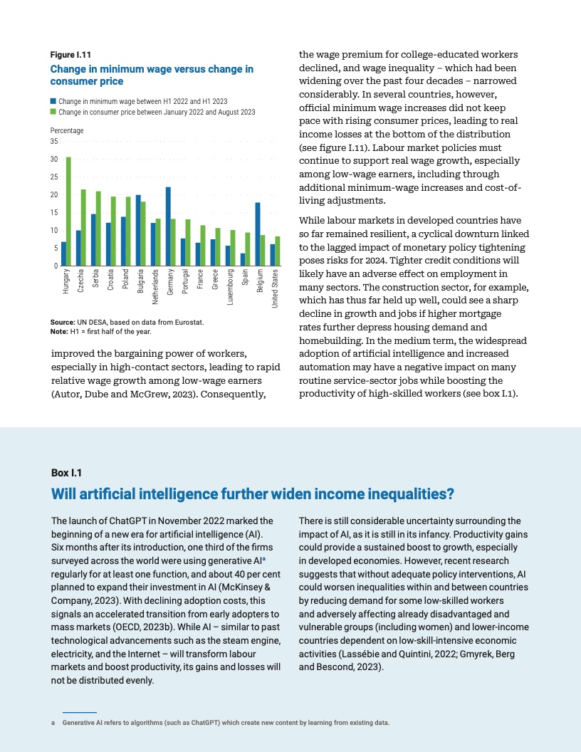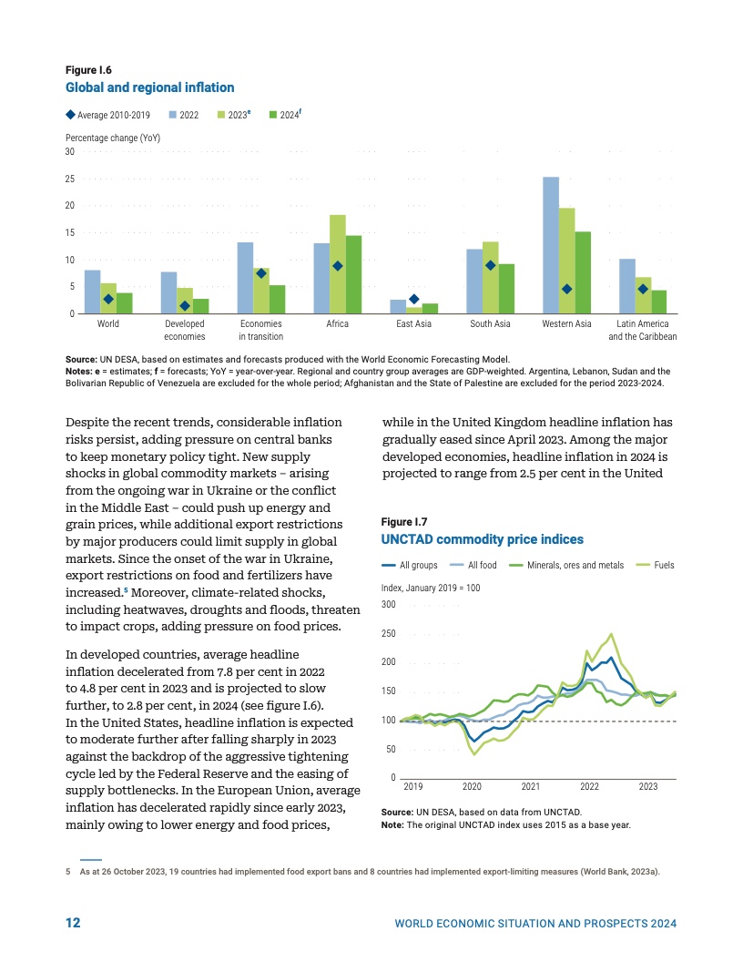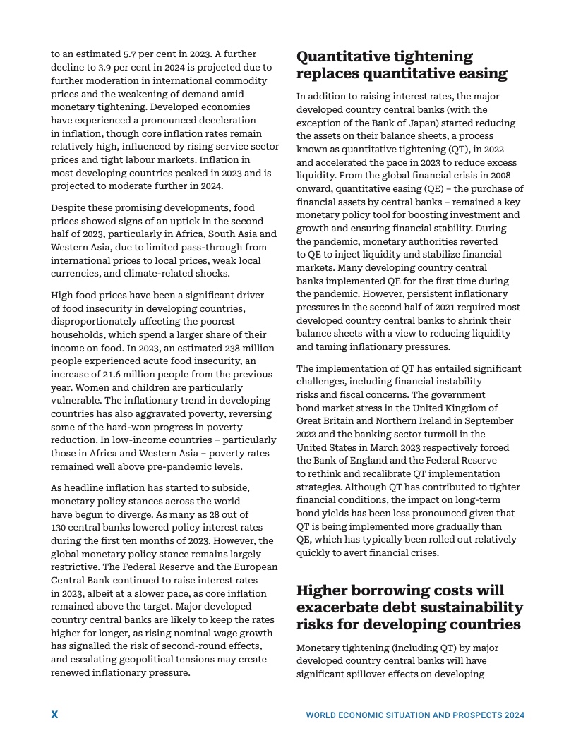 不过报告同时认为,许多国家的物价压力仍然较大,地缘政治冲突进一步升级,有可能导致通胀再次上升。预计在大约四分之一的发展中国家,其2024年的年通货膨胀率将超过10%。