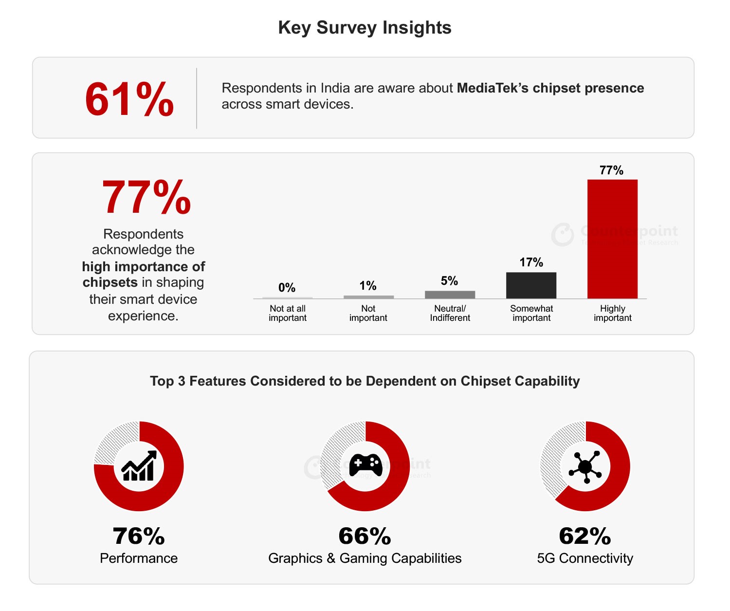 随着印度智能手机市场的成熟,消费者对自己拥有的智能设备越来越了解。他们在购买智能手机时做出明智的决定,智能手机是他们日常活动的关键设备。认识到芯片组作为智能设备的关键差异化因素的重要性,Counterpoint在印度进行了一项消费者调查。重点是了解印度人对芯片组的认识和重要性。印度是全球第二大智能手机市场,也是各种智能设备增长最快的市场之一。