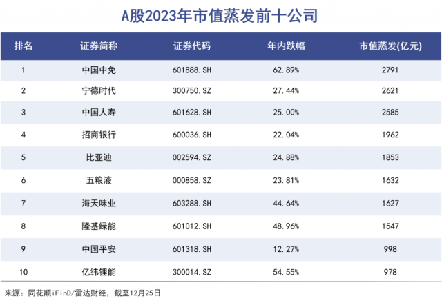 这一跌幅,仅次于中国中免,位居2023年A股市值蒸发榜第二位。如果以年内最高点到年内最低点的区间计算,宁德时代的股价降幅达42%。