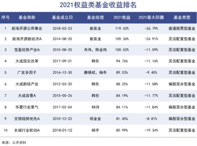 风格切换,基金经理的排位随之切换。前海开源基金的崔宸龙异军突起,因重仓锂电、光伏等新能源标的,其狂揽2021年股混双料冠军,个人的基金管理总规模最高突破400亿关口。