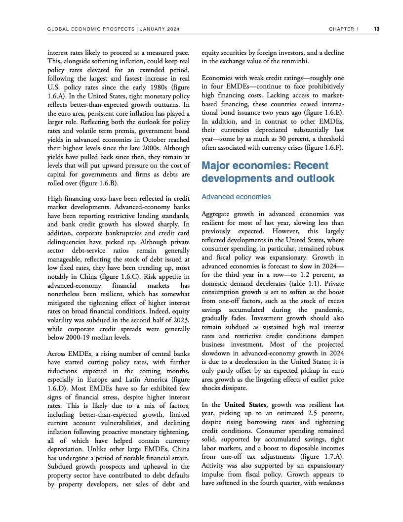 与此同时,在大多数主要经济体增长放缓、全球贸易低迷以及数十年来最为紧缩的金融条件下,许多发展中经济体的中期前景变得黯淡,其借贷成本很可能继续高企,因为经通胀调整后的全球利率仍处于40年的高位.