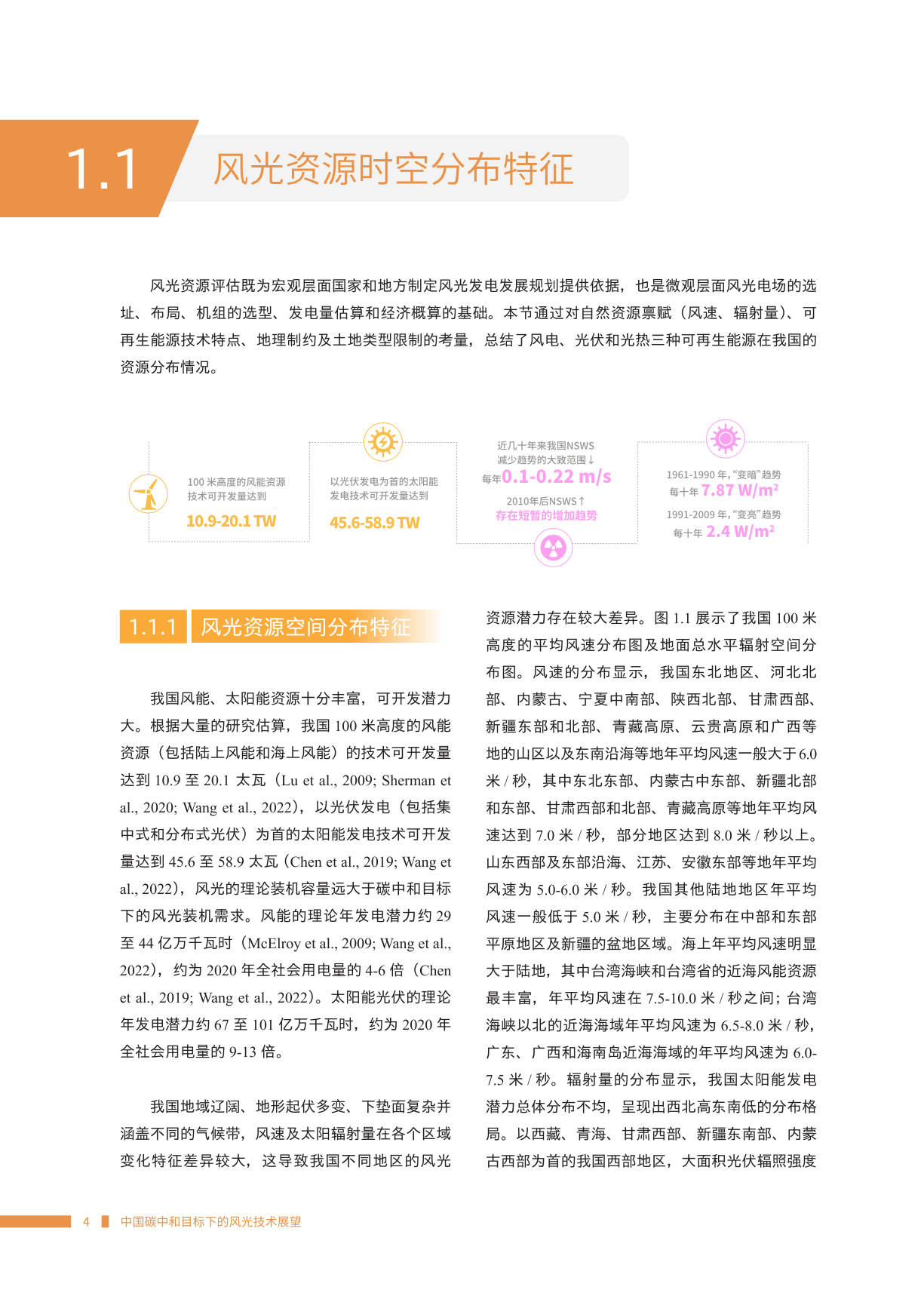 在这一战略背景下,本报告旨在明确风、光 发电等可再生能源发展面临的全产业链关键风险 与挑战,识别风、光发电开发的内在优势与产业 新机遇、新业态,并在此基础上展望我国风光发 展的路线图与时间表,为我国未来电力系统的绿 色与低碳发展提供数据支撑与相关建议。