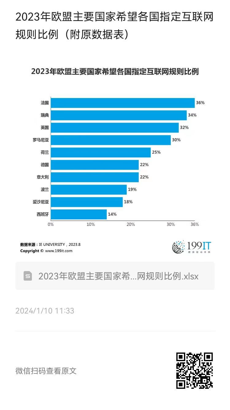 2023年欧盟主要国家希望各国指定互联网规则比例(附原数据表) ​​​