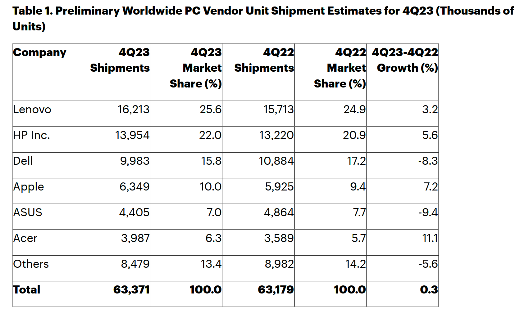 虽然这对整个行业来说是毁灭性的,但 2023 年第四季度还是出现了一线希望。全球出货量与去年同期相比增长了 0.3%,结束了两年来季度出货量连续下降的局面。