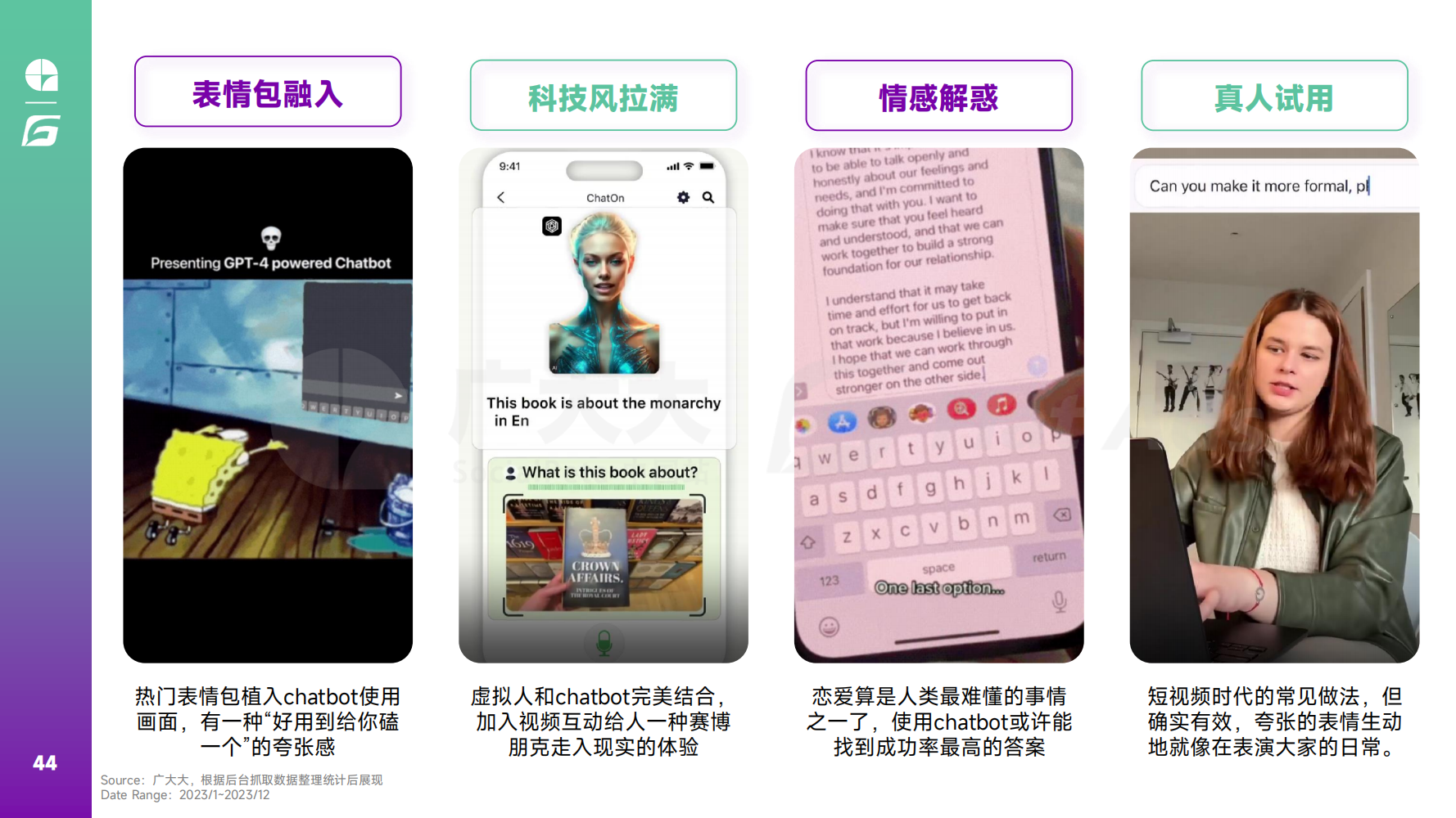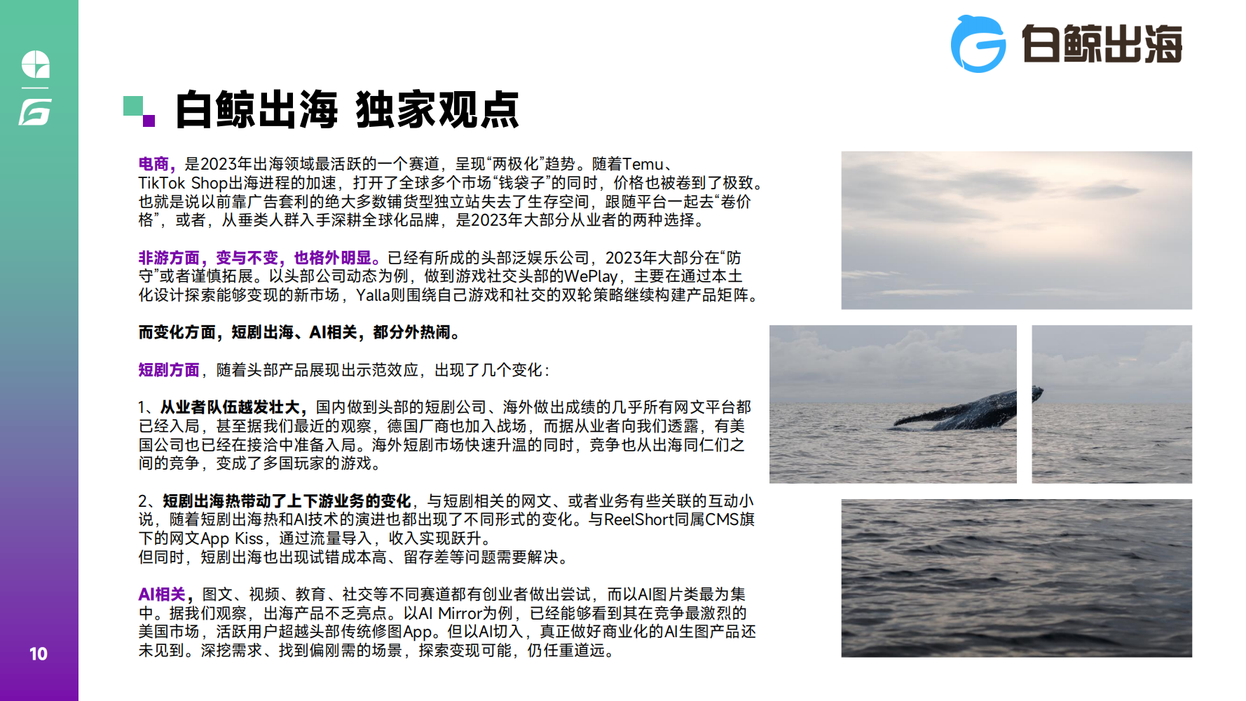 随着国内政策变化,移动APP业务在国内的前景也变得愈加扑朔迷离,但这也给出海应用带来了助推力。2023年,AI和短剧应用的“凭空出世”给出海人们打了一针强心剂,随着用户需求的增长和行业技术的成熟,这两个赛道也将在2024年获得更多深入发展。