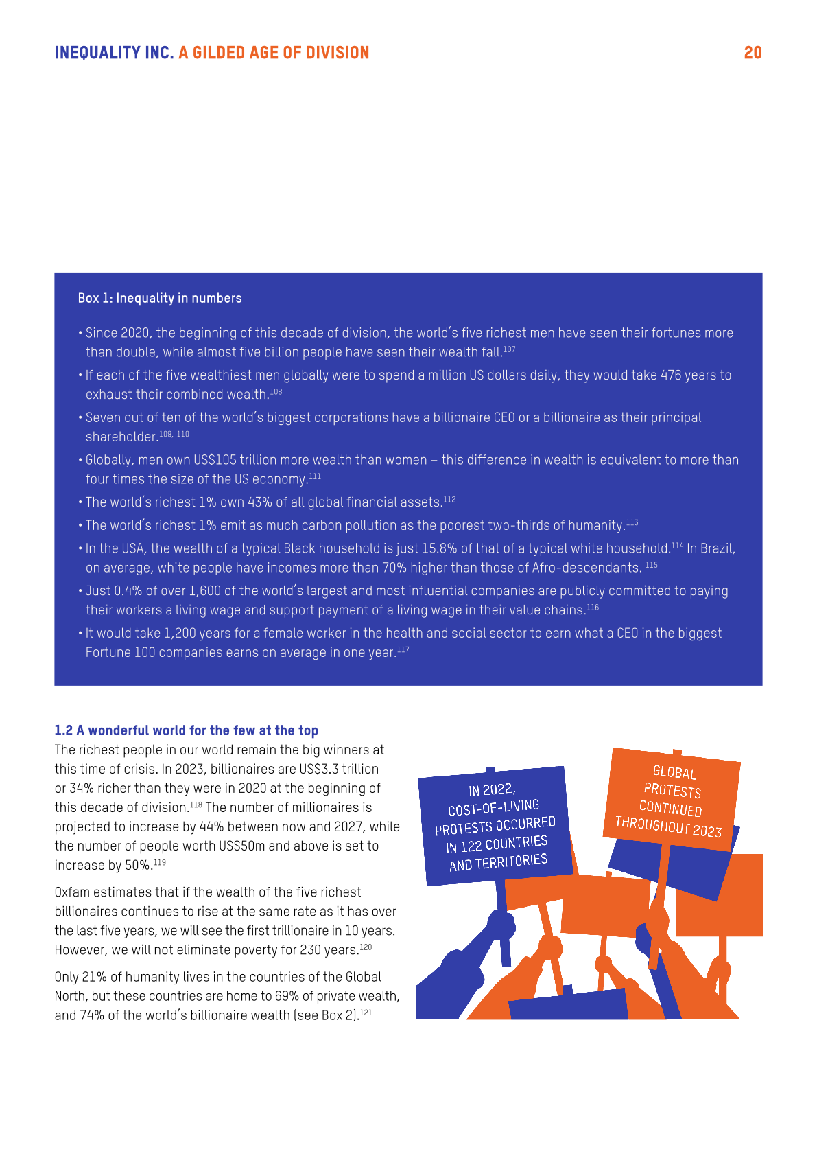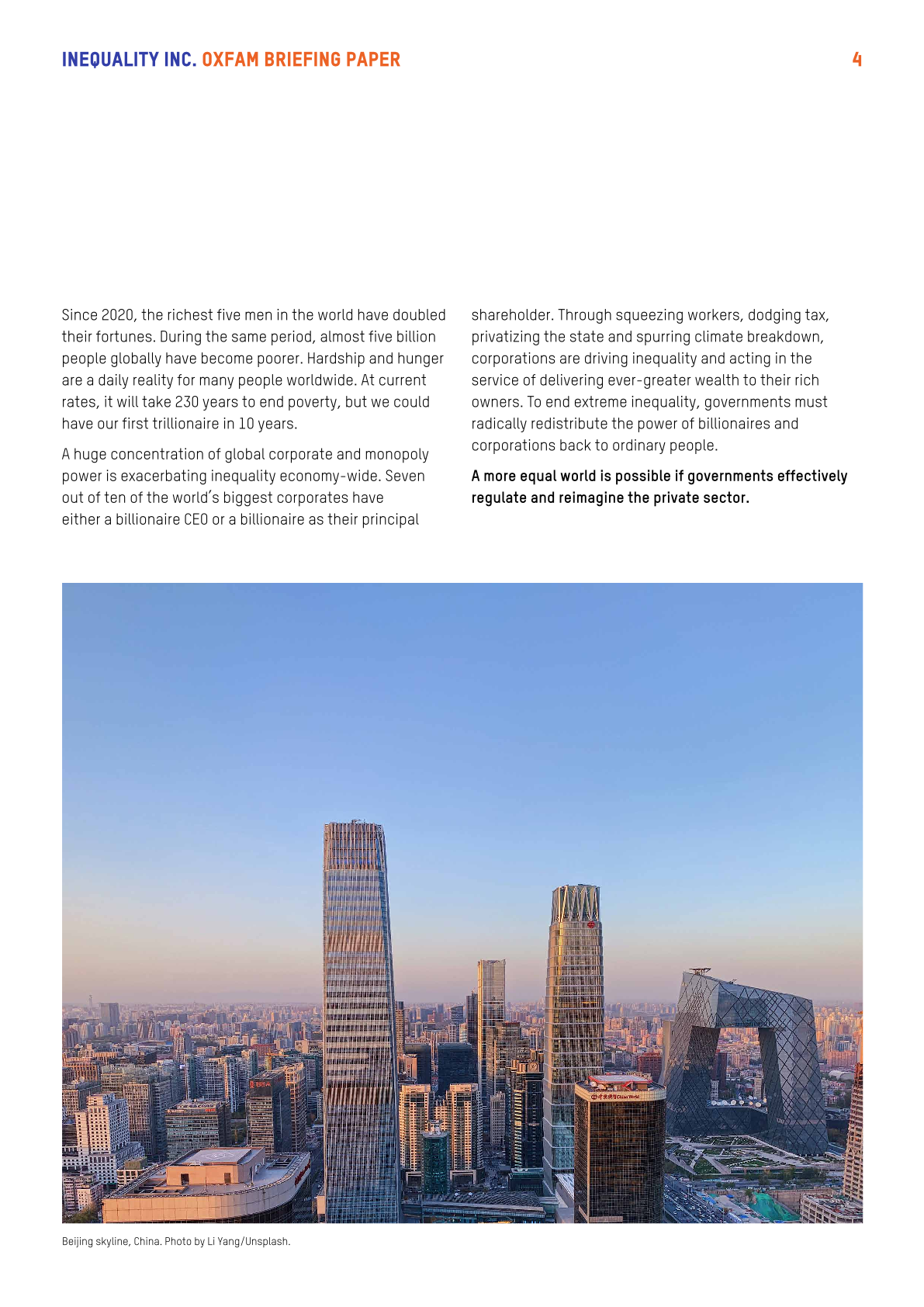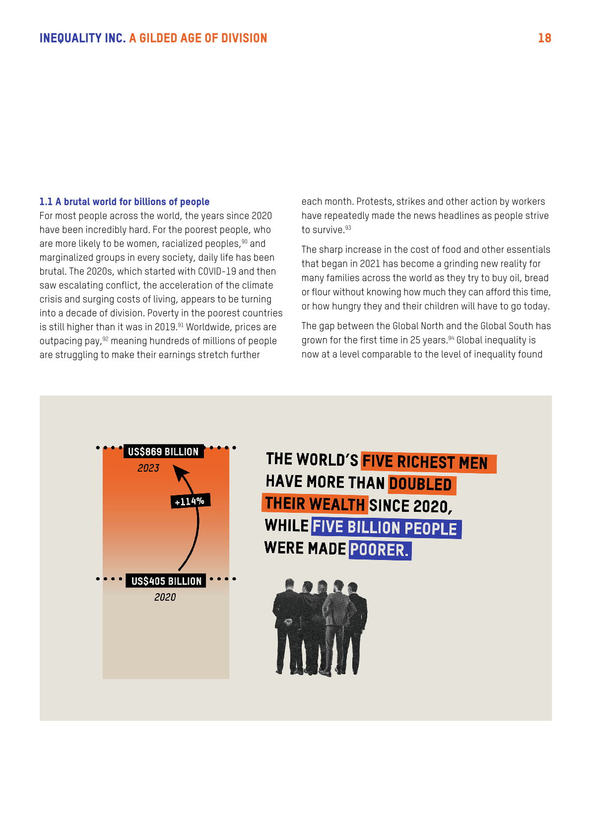 最新报告《不平等的公司》,揭示由2020年起至今,全球五大富豪的财富增长了逾一倍,由4,050亿美元上升至8,690亿美元,平均每小时增加1,400万美元的财富。与此同时,全球有近50亿人口陷入贫穷问题,反映全球贫富差距进一步扩大。如果此趋势持续下去,国际乐施会预测,全球在未来十年内可能会出现首位持有1万亿美元财富的超级富豪;亦推算出全球需要花上229年的时间才能彻底消除贫穷问题。