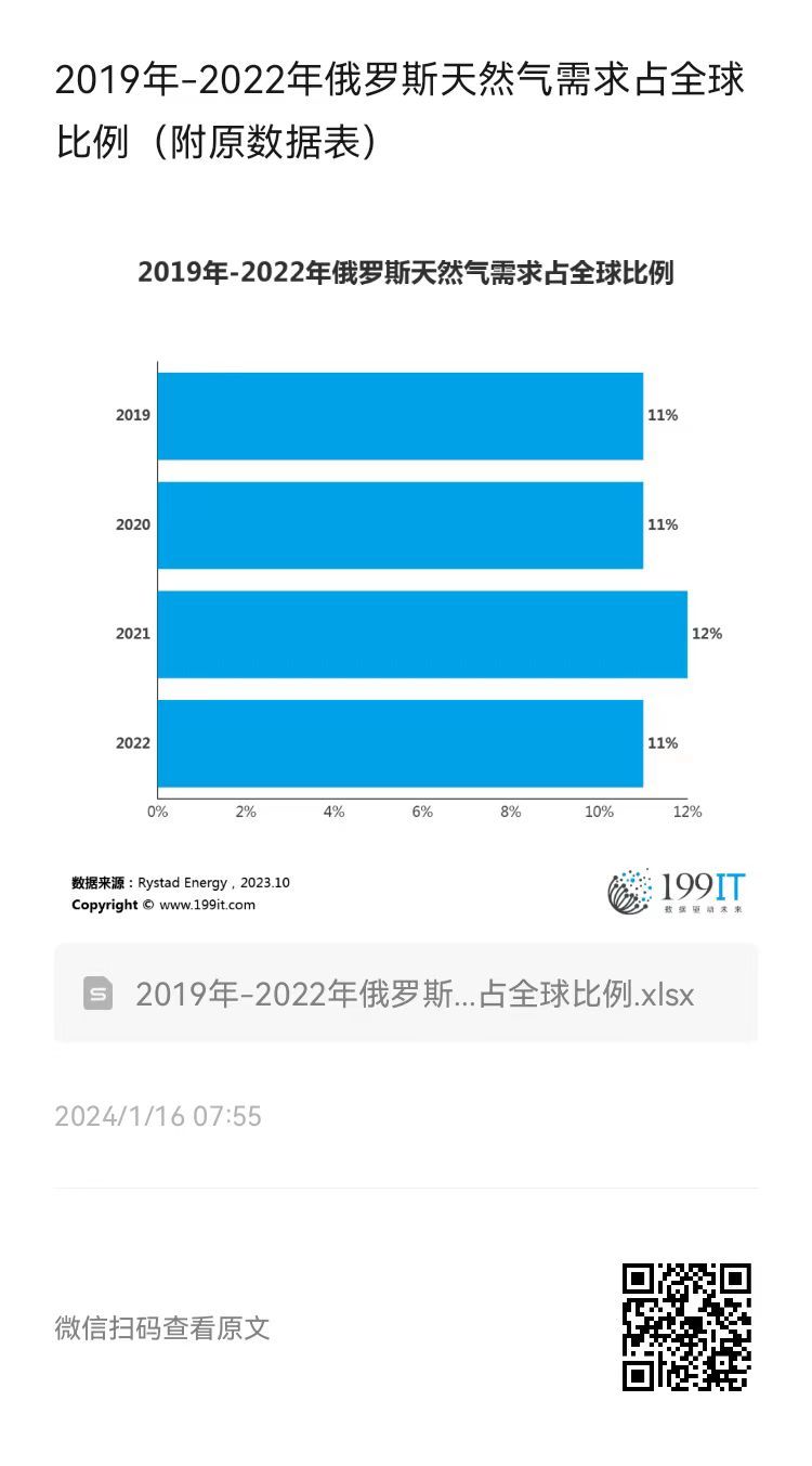 2019年-2022年俄罗斯天然气需求占全球比例(附原数据表) ​​​