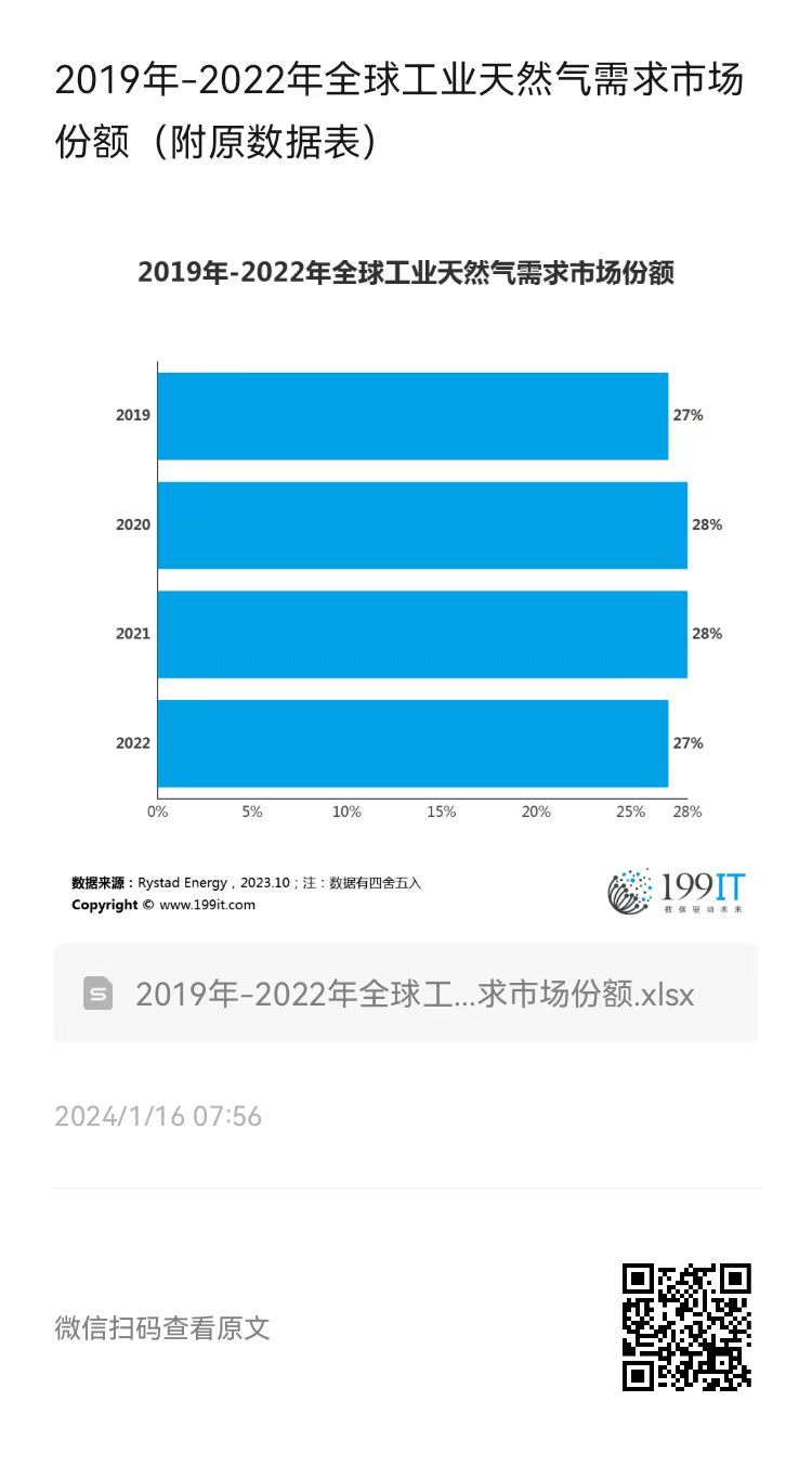 2019年-2022年全球工业天然气需求市场份额(附原数据表) ​​​