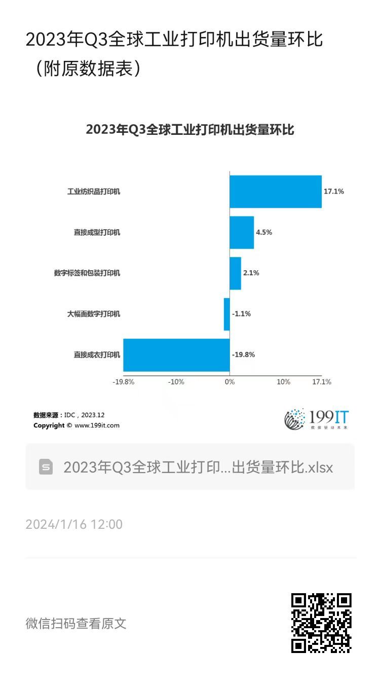 - 2023年Q4全球工业打印机出货量同比增长率(附原数据表)