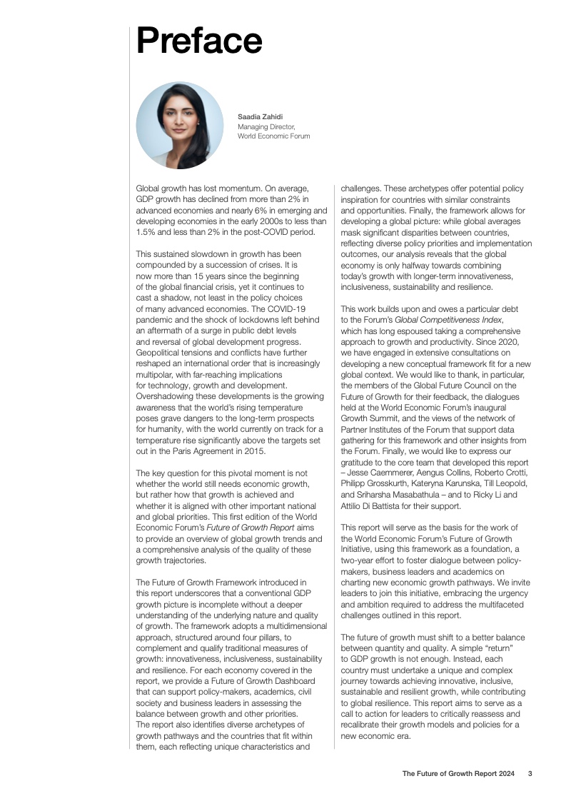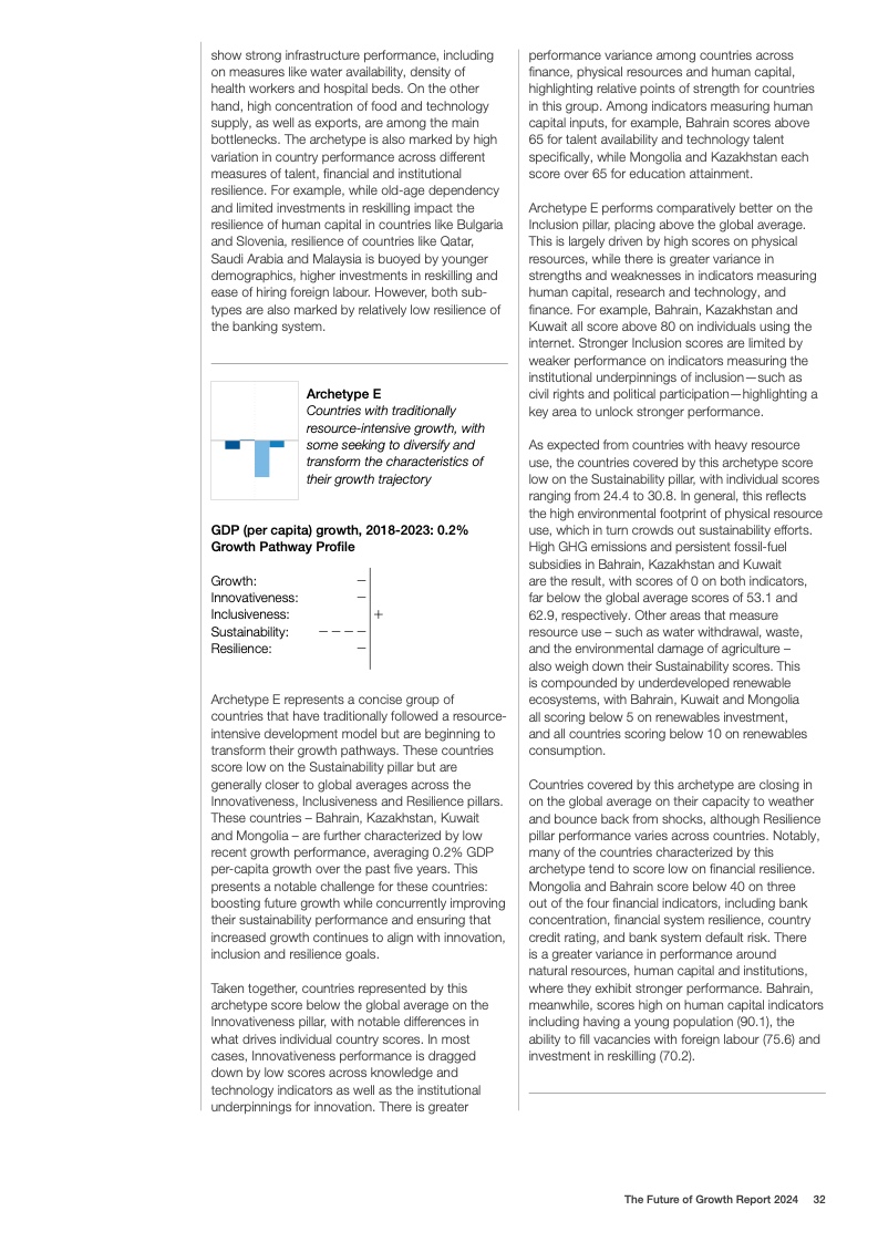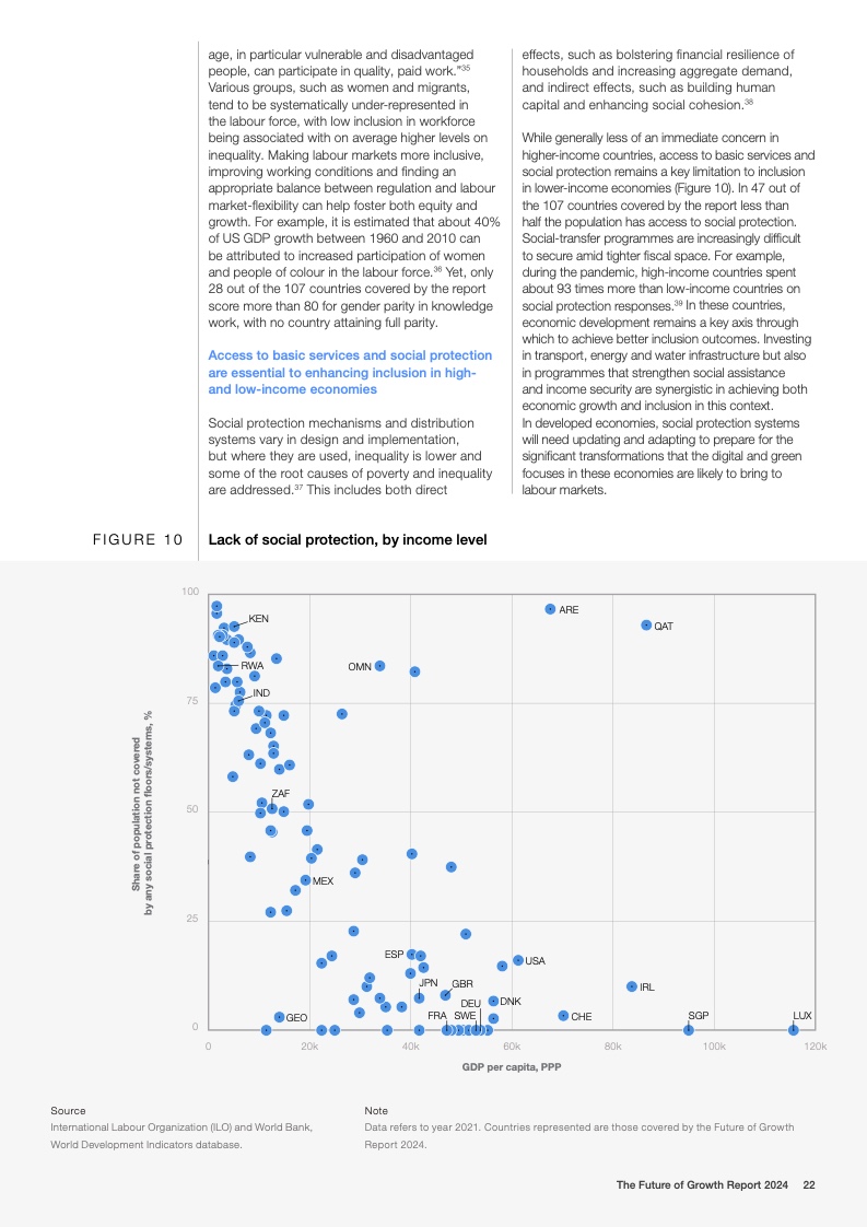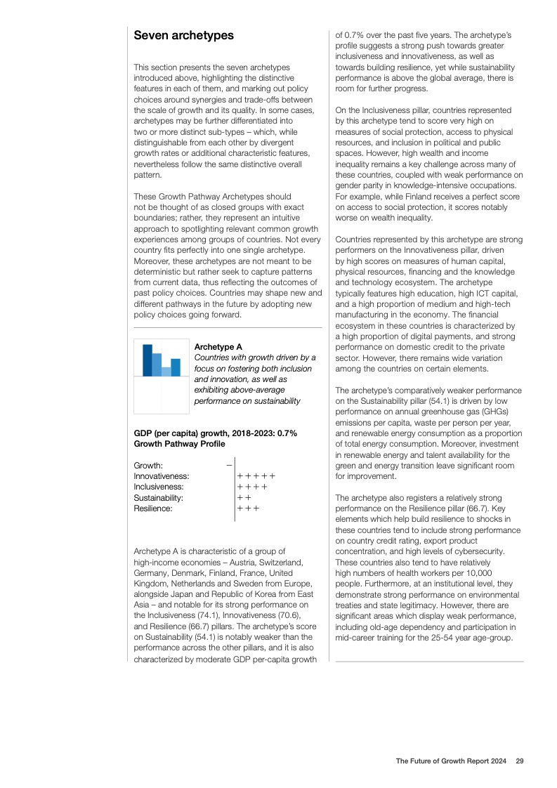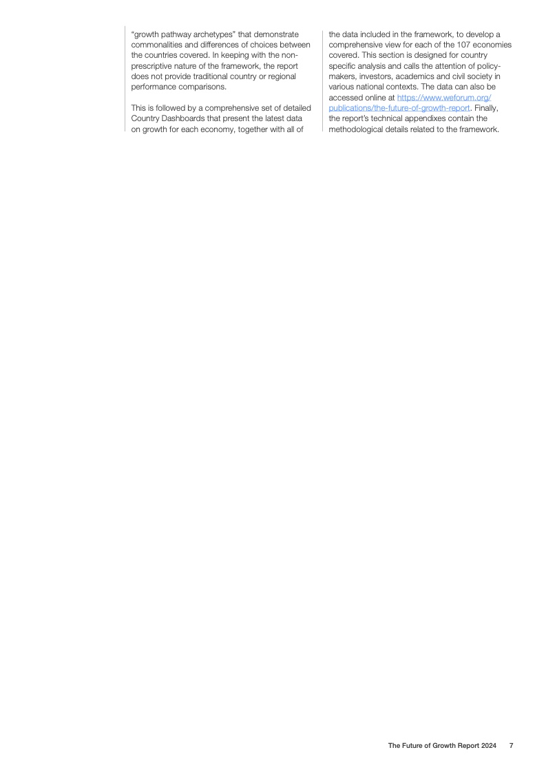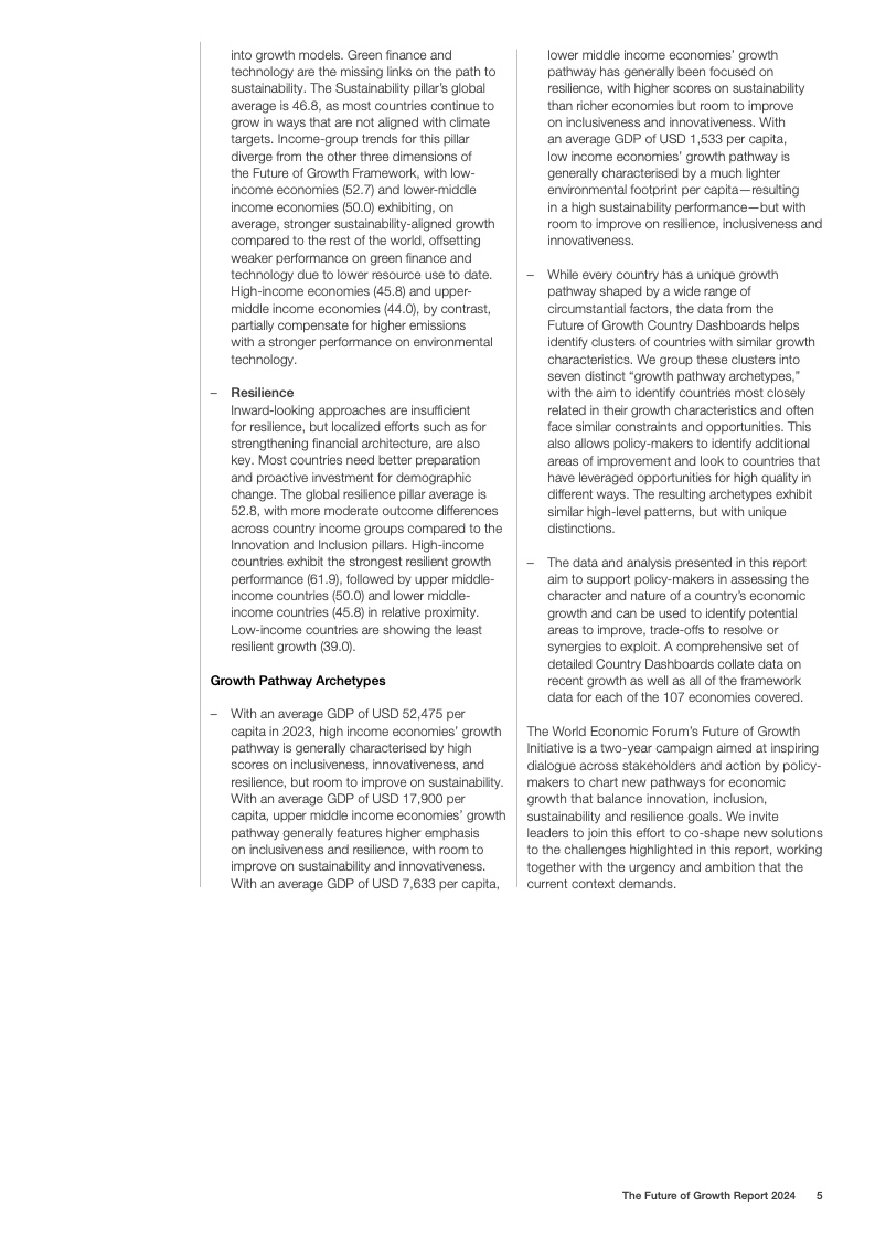 从国家层面来看,在参与评估的107个经济体中,没有一个经济体在框架四大维度的任何一项维度上得分超过80。报告提供了每个国家的分析数据,帮助决策者评估国家增长的特点和性质,确定需要改善提高和协同增效的领域。