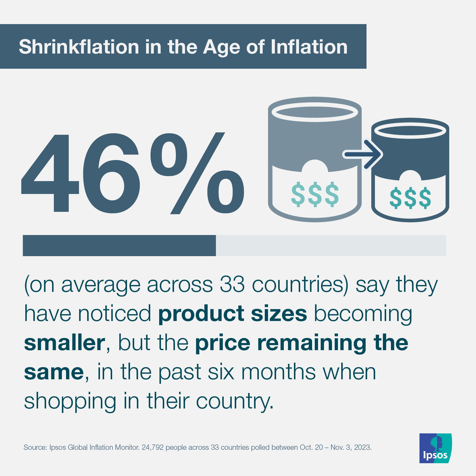 最近的调查发现,在33个受访国家,平均有46%的消费者注意到产品分量变少了,但价格却保持不变。