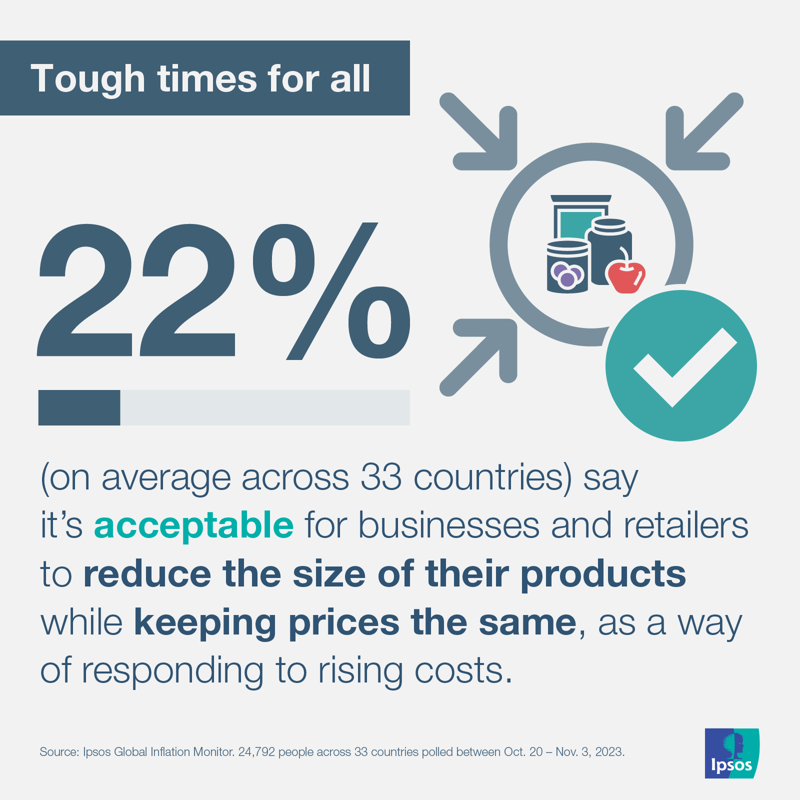 22%的下佛欸这表示,企业/零售商在保持价格不变的情况下缩减产品的分量是可以接受的,这是应对成本上升的一种方式。