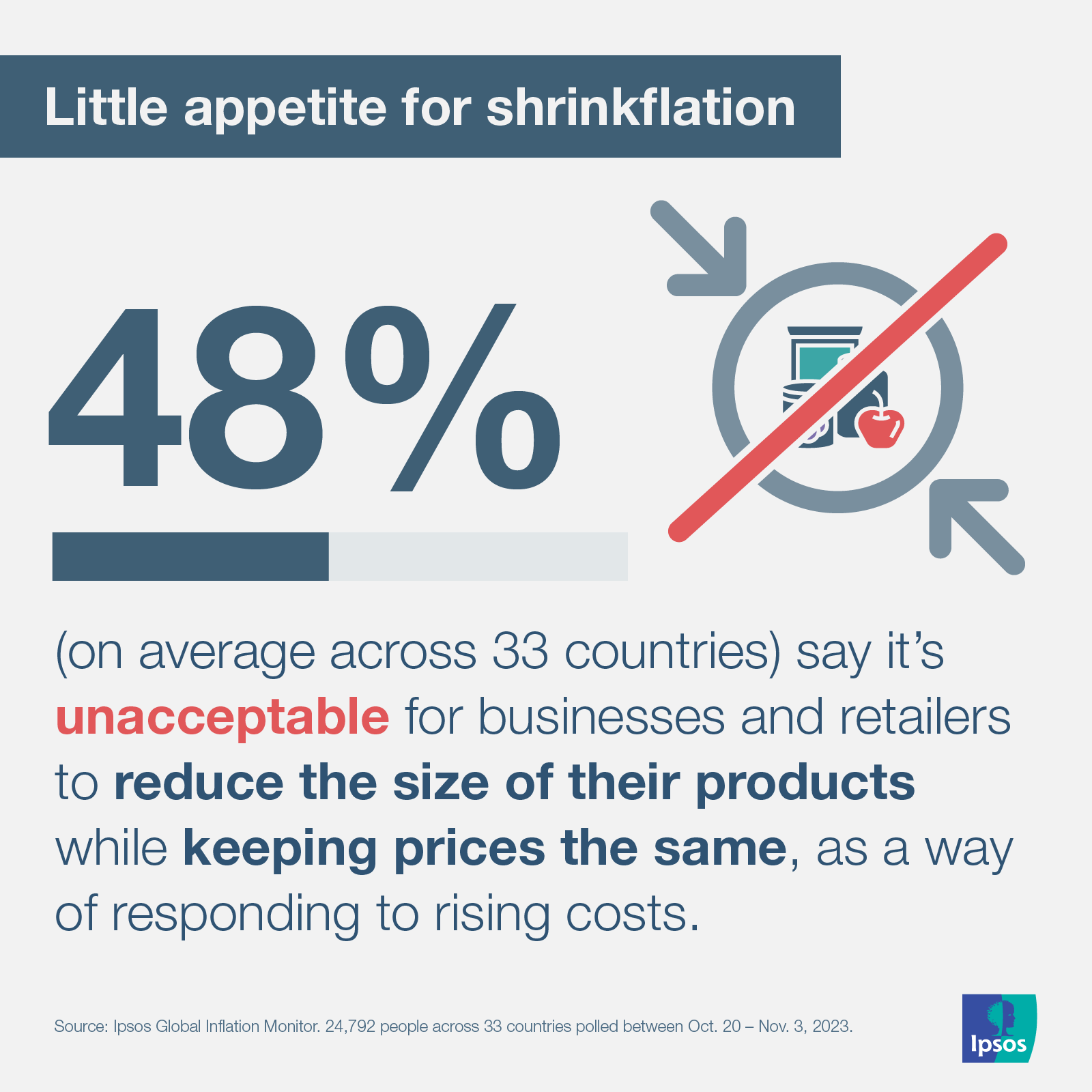 考虑到许多人仍然感受到的财务痛苦,几乎一半的人(全球平均48%)认为企业/零售商通过缩减分量应对成本上涨是不可接受的。