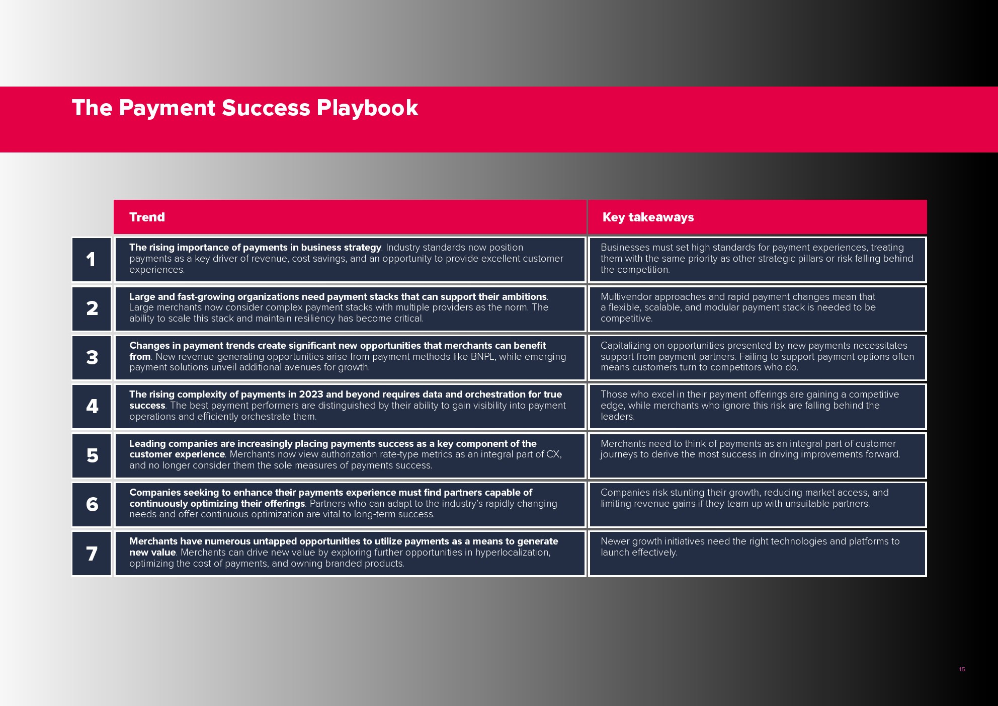 2023年,具有前瞻性的企业已经认识到支付的战略意义,并将其提升为其整体业务战略和长期计划的关键支柱。支付不再仅仅被视为一种交易功能,而是一种重要的收入加速器和降低成本的机会。