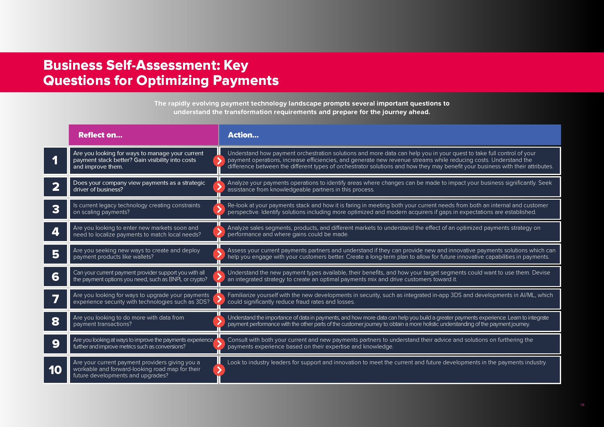 创新企业将支付视为整体客户体验的关键要素,而不是一个孤立的功能。他们不断寻求优化支付体验的方法,以增加收入,减少费用和欺诈造成的损失。