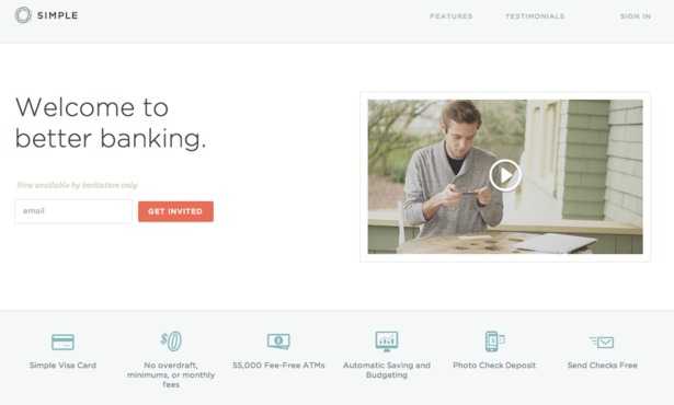 研究表明,96%的人访问网站时首先关注视觉设计,只有6%注意到网站内容。第一印象可持续数年。视觉感受比用户体验更容易在第一时间形成。以下是Simple在线银行的网站。简洁明了的首页与网站宗旨完全契合,这也是利用大幅白背景引导注意力的典例。