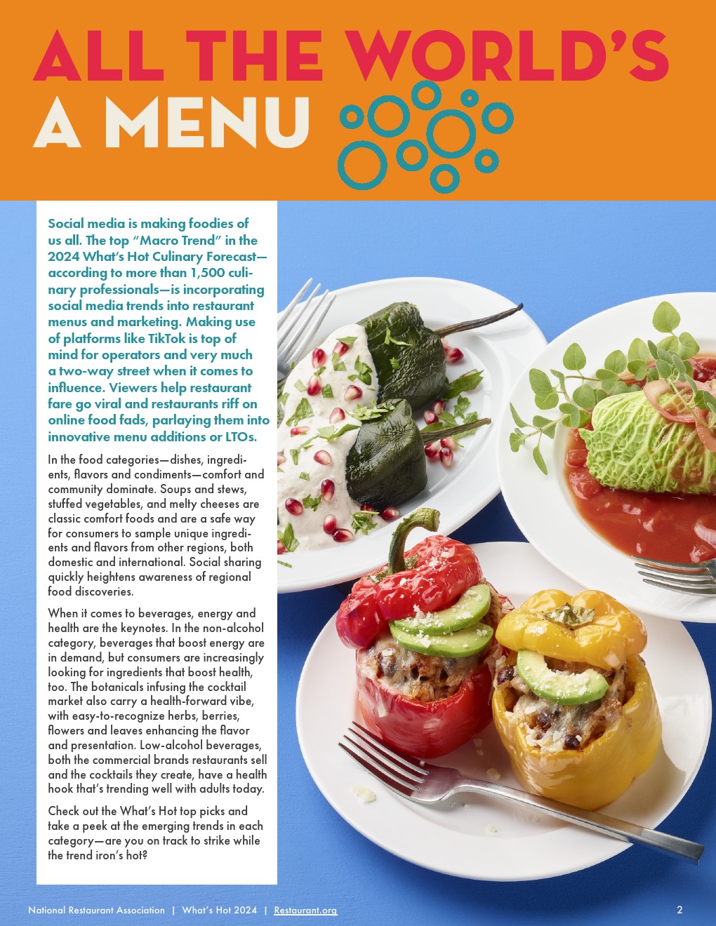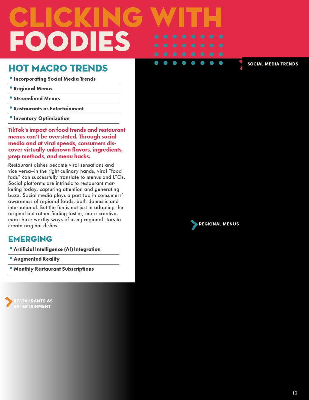 社交媒体正在把我们所有人都变成美食家。根据1500多名烹饪专业人士的调查,最重要的“宏观趋势”是将社交媒体趋势融入餐馆菜单和营销中。对运营商来说,利用TikTok这样的平台是头等大事,在影响力方面,这是一条双向道路。观众帮助餐馆的菜品走红,餐馆模仿网上的美食潮流,将它们融入创新的菜单或LTO中。