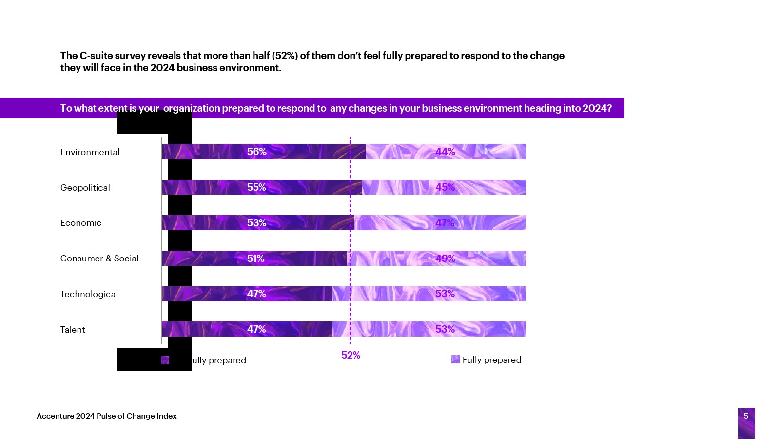 - 尽管他们很乐观,但超过一半的人(52%)表示,他们还没有完全准备好应对2024年商业环境的变化。