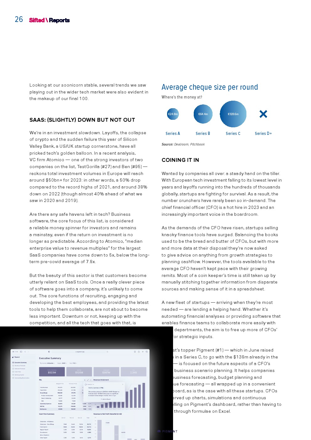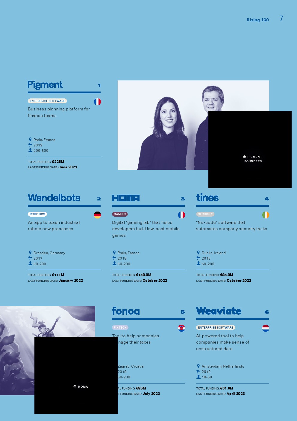 Sifted Intelligence发布了“终极B2B SaaS创业公司排行榜”。法国商业规划软件制造商PIGMENT位居榜首,其次是德国“nocode”机器人工具WANDELBOTS和法国在线游戏实验室HOMA GAMES。