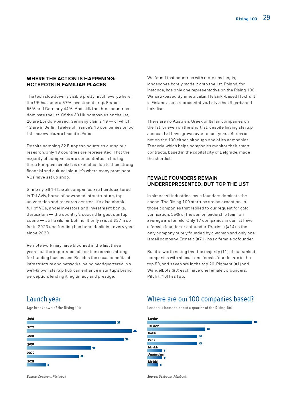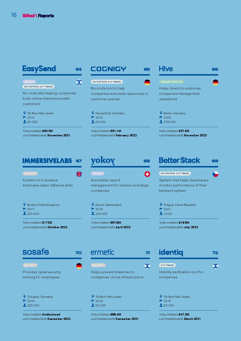 伦敦是上榜公司最多的城市(26家),其次是特拉维夫(14家)、柏林和巴黎(各12家)。