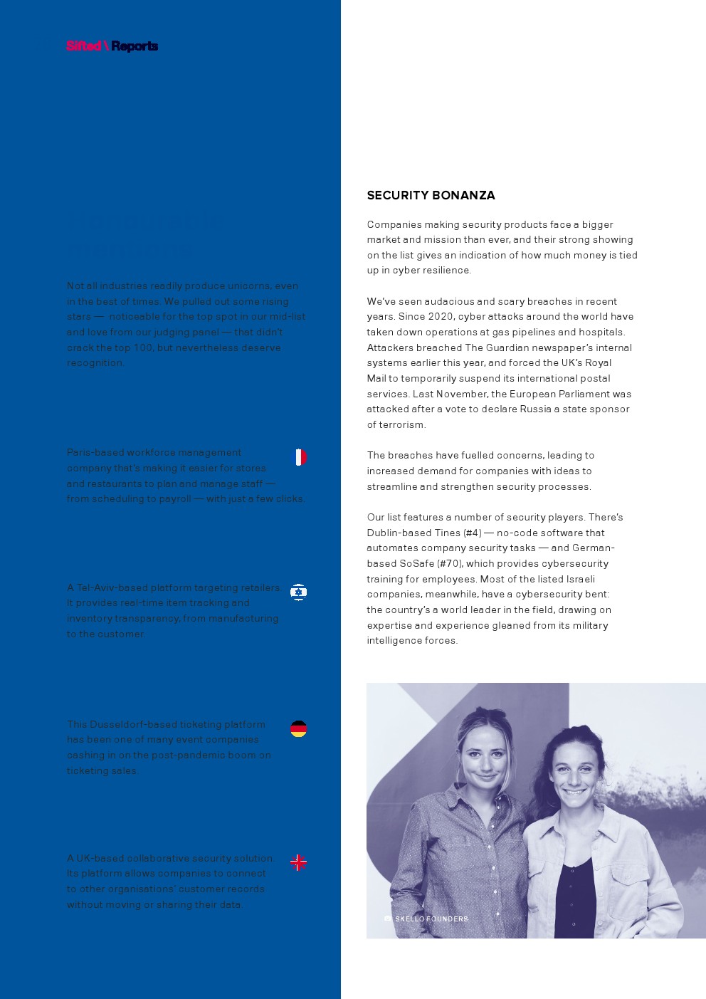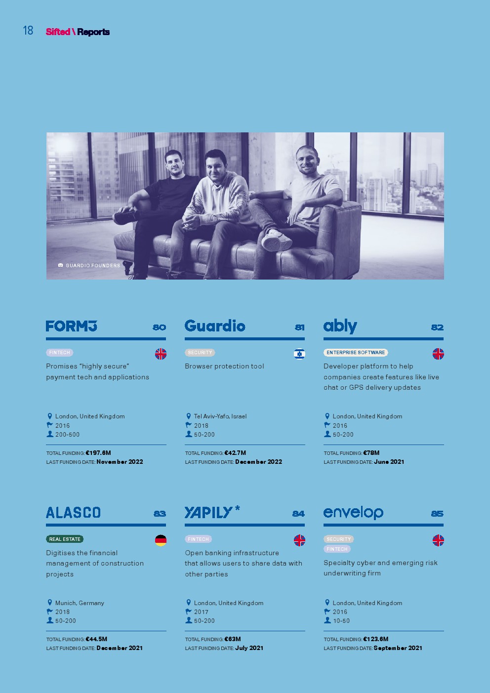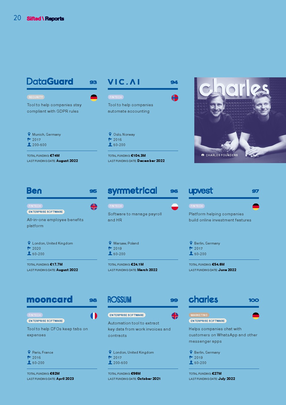 上榜的创业公司来自17个不同的欧洲国家,其中英国(30家)、德国(19家)和法国(16家)居首。