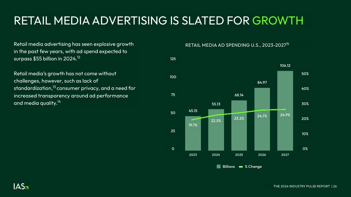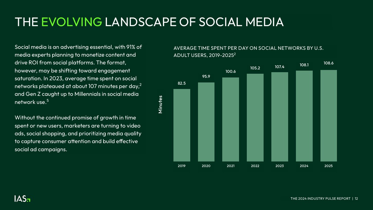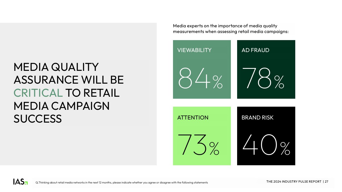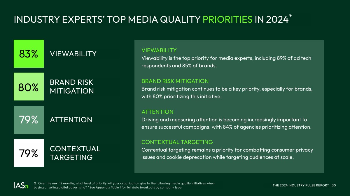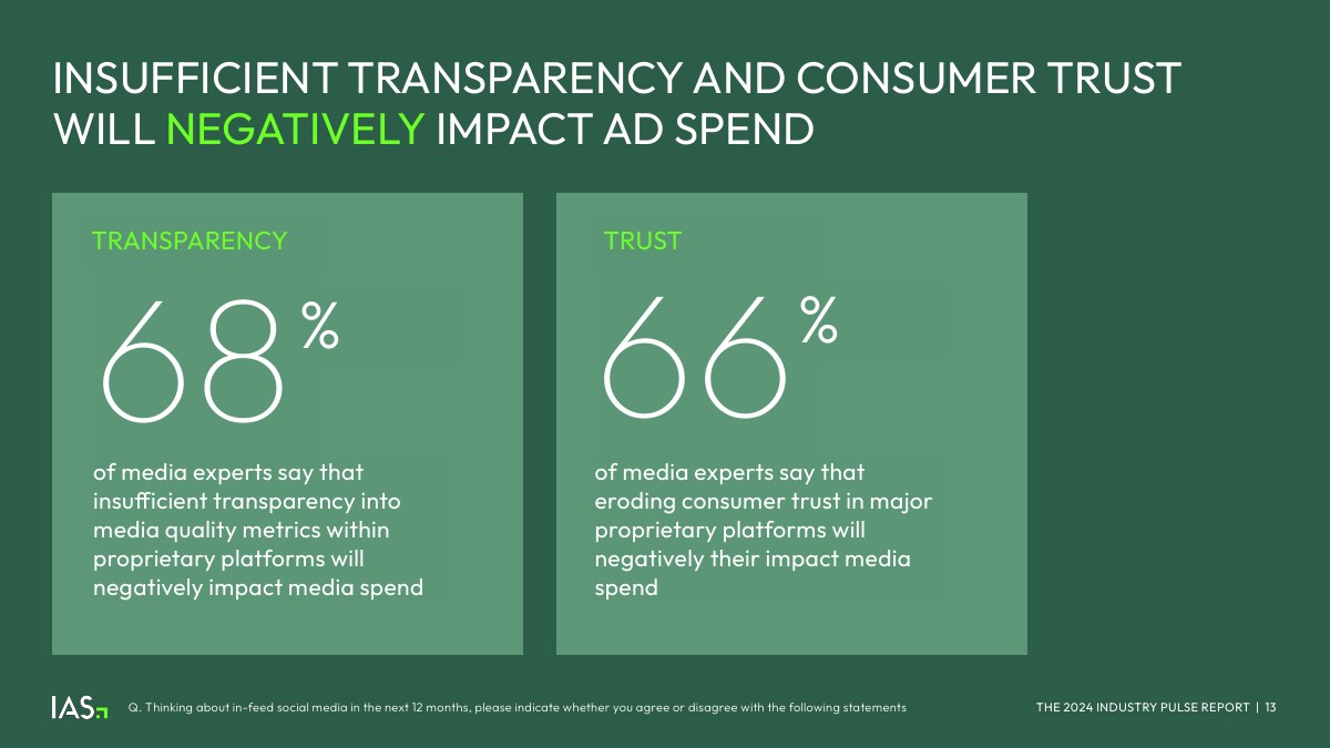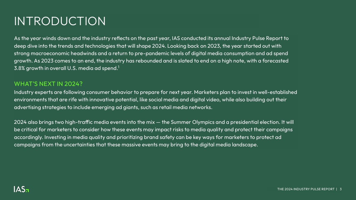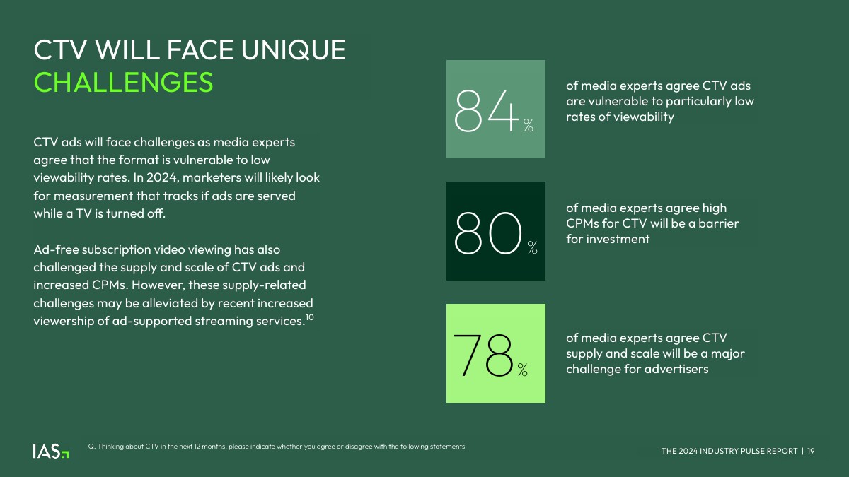 IAS发布了“2024年行业脉搏报告之美国版”。社交媒体是今年最可能面临严峻挑战的媒体类型。这可能与这些平台固有的风险有关,特别是在选举年,因为社交媒体被认为是最容易受到品牌风险和广告欺诈影响的环境。
