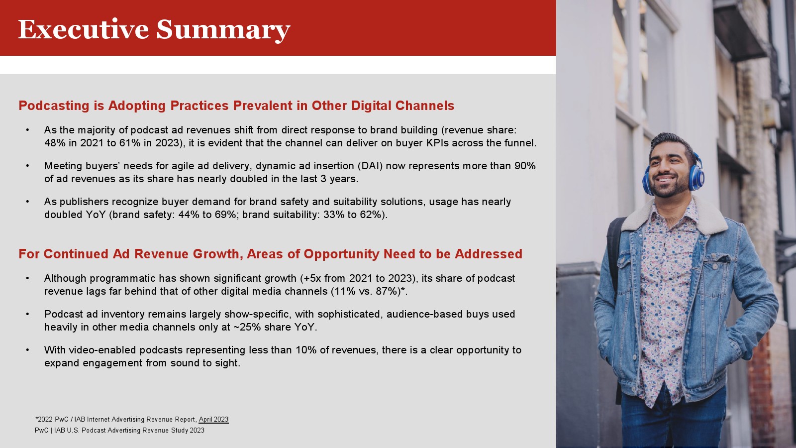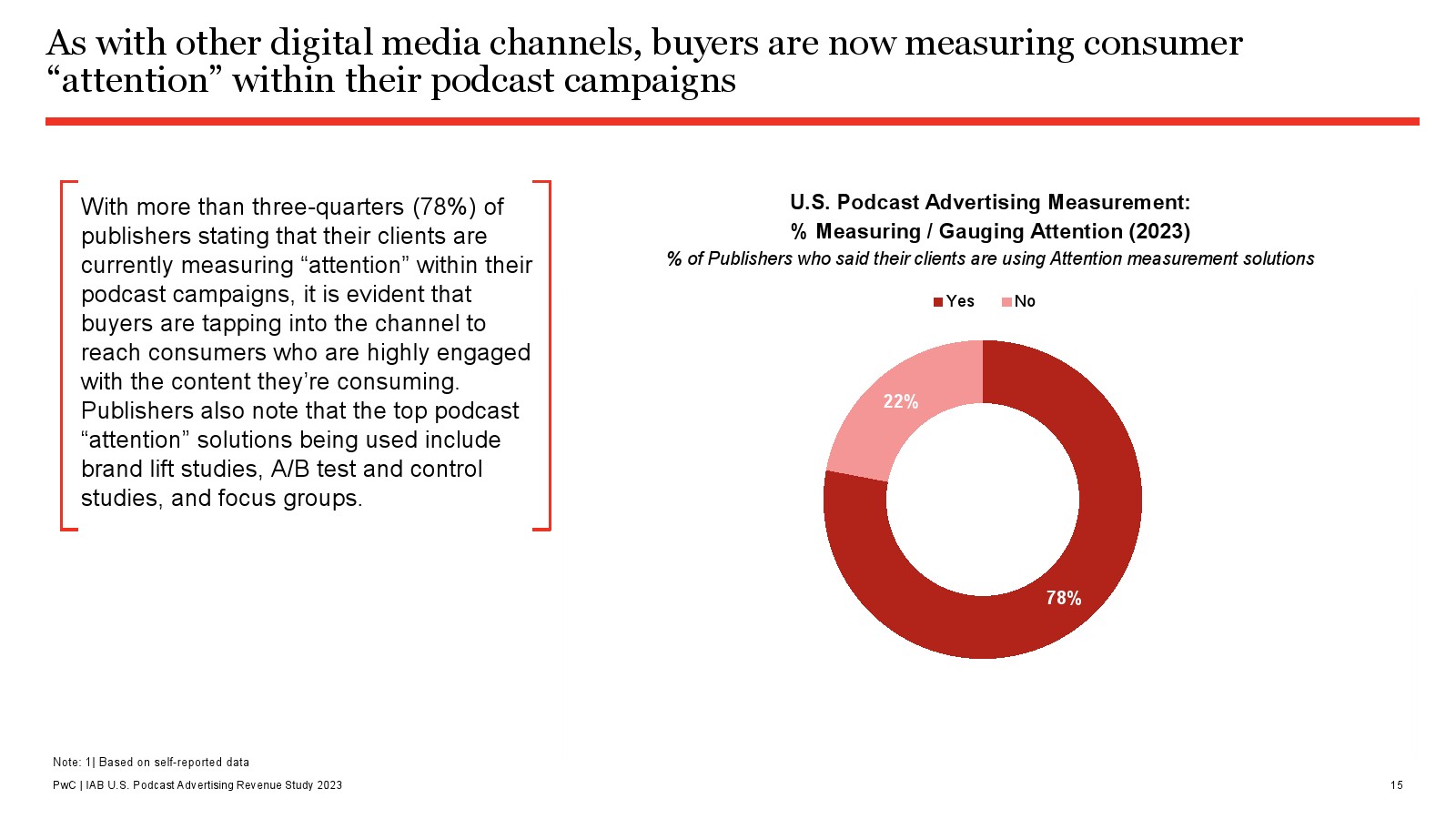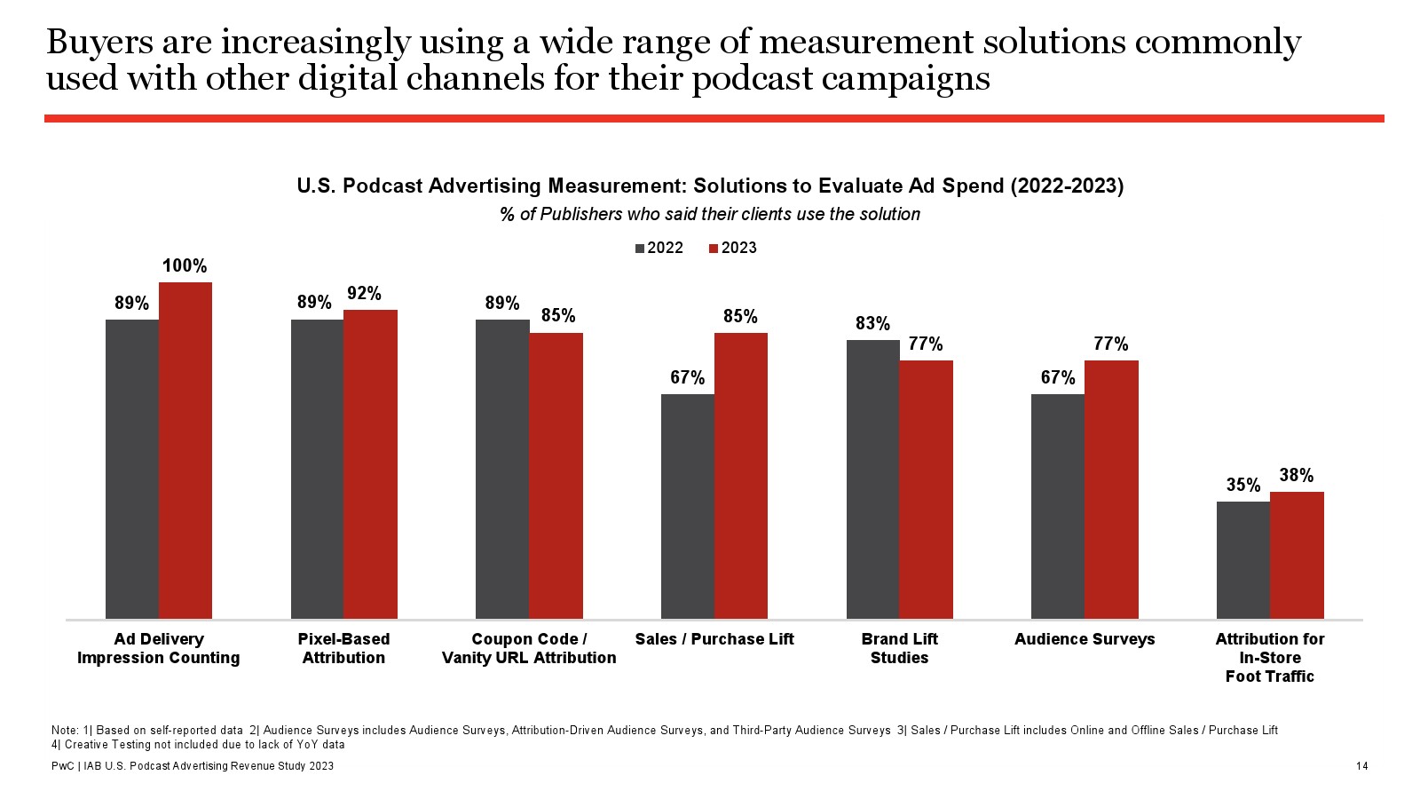 大部分播客广告收入从直接响应转向品牌建设(收入份额:2021年为48%,2023年为61%),很明显,该渠道可以在整个渠道中实现买家KPI。