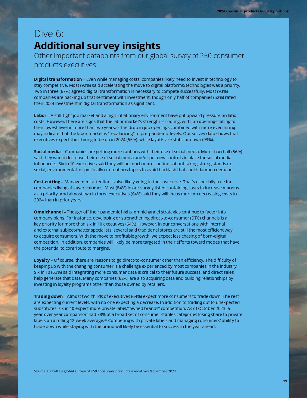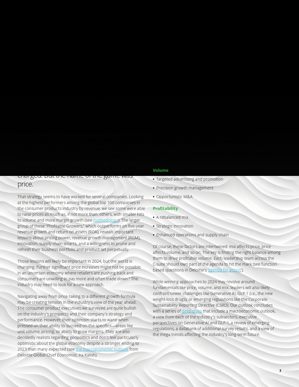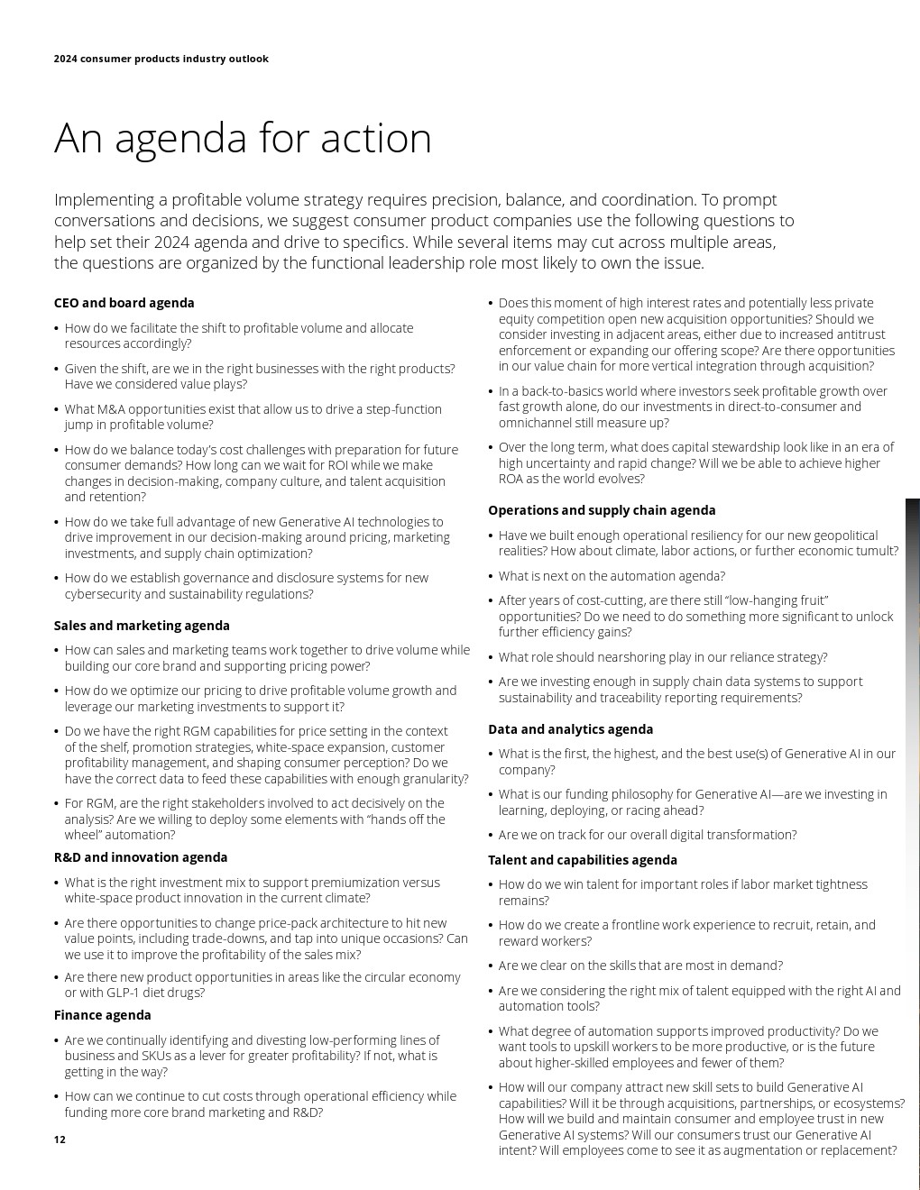 虽然通往2024年的成功之路可能围绕着价格、数量和组合等基本面因素,但领导者也可能面临新的挑战,比如生成式人工智能、GLP-1,或者像《企业可持续发展报告指令》(CSRD)这样的新法规。