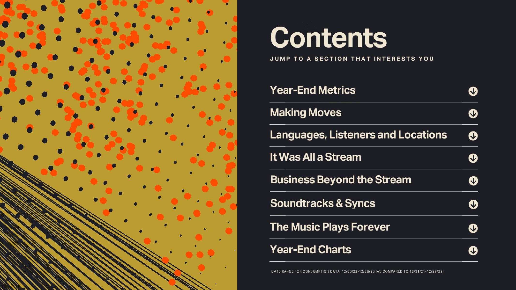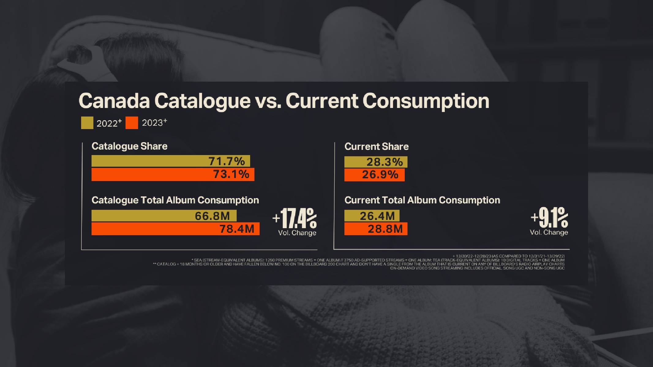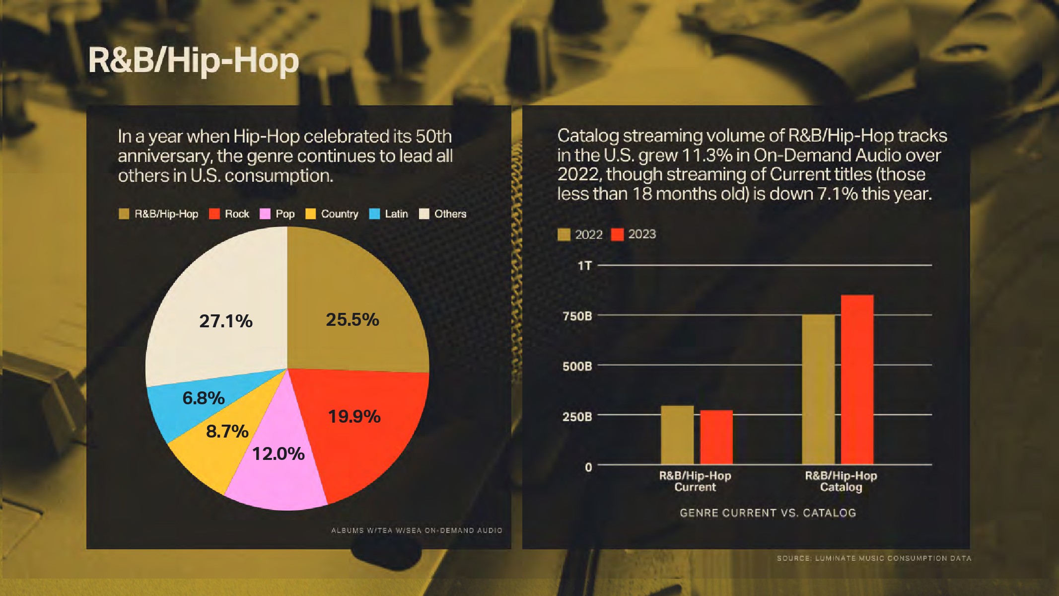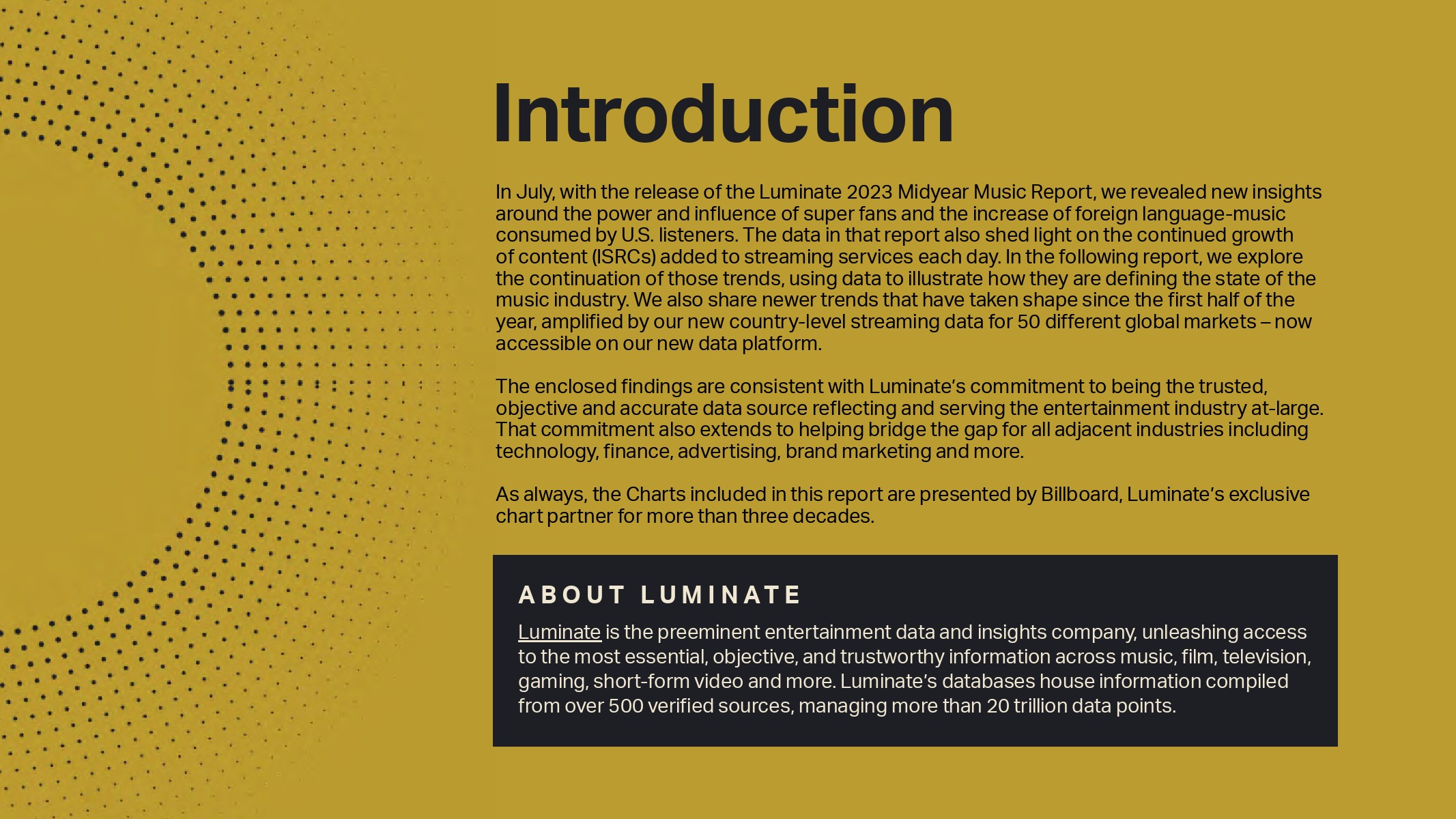 最新的Luminate数据显示,从2022年到2023年,音频点播流媒体活动总量增长了12.70%。