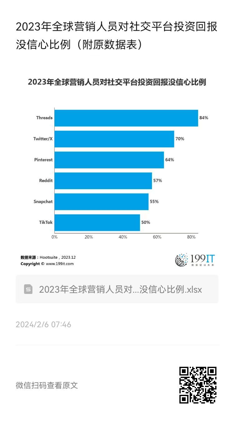 2023年全球营销人员对社交平台投资回报没信心比例(附原数据表) ​​​