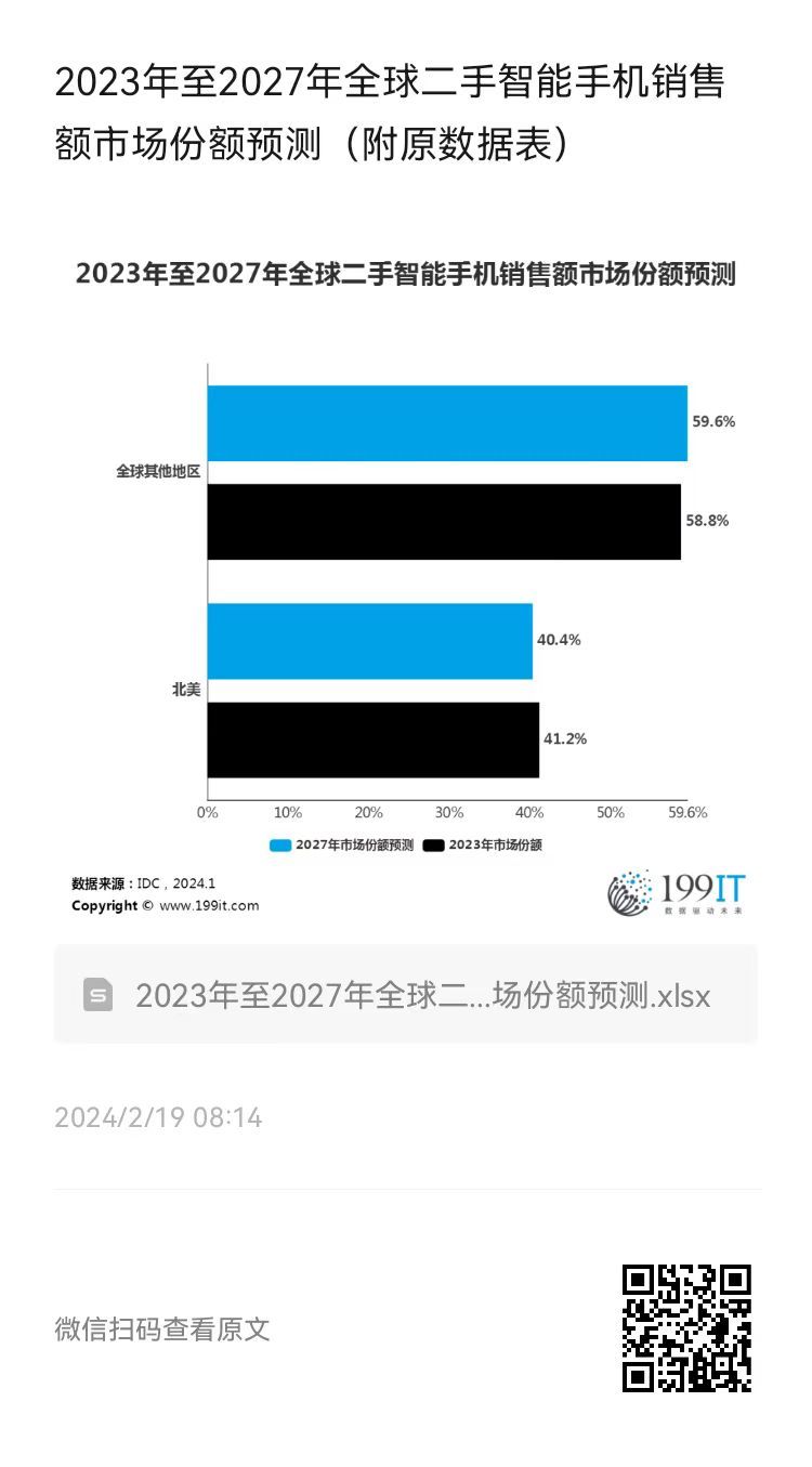 - 2023年至2027年全球二手智能手机销售额预测(附原数据表)
