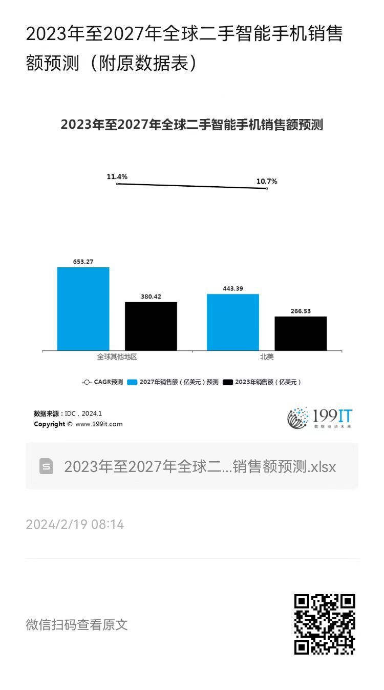 - 2023年至2027年全球二手智能手机销售额市场份额预测(附原数据表)