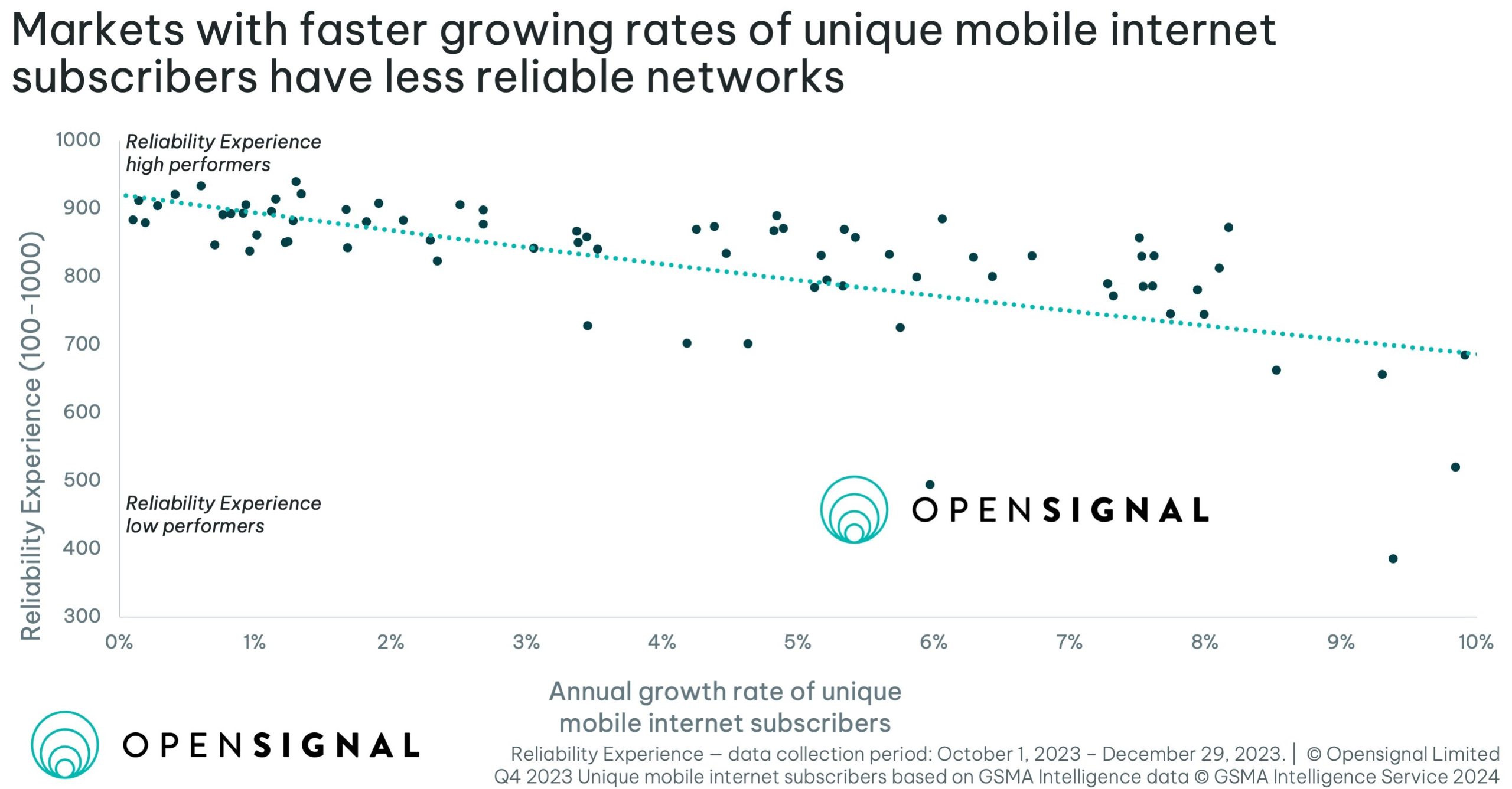 移动用户增长速度越快的市场,可靠性得分越低