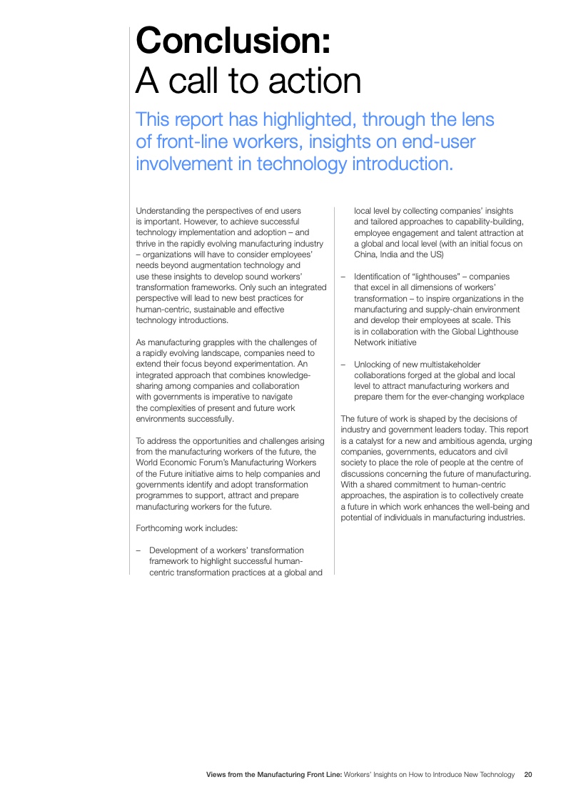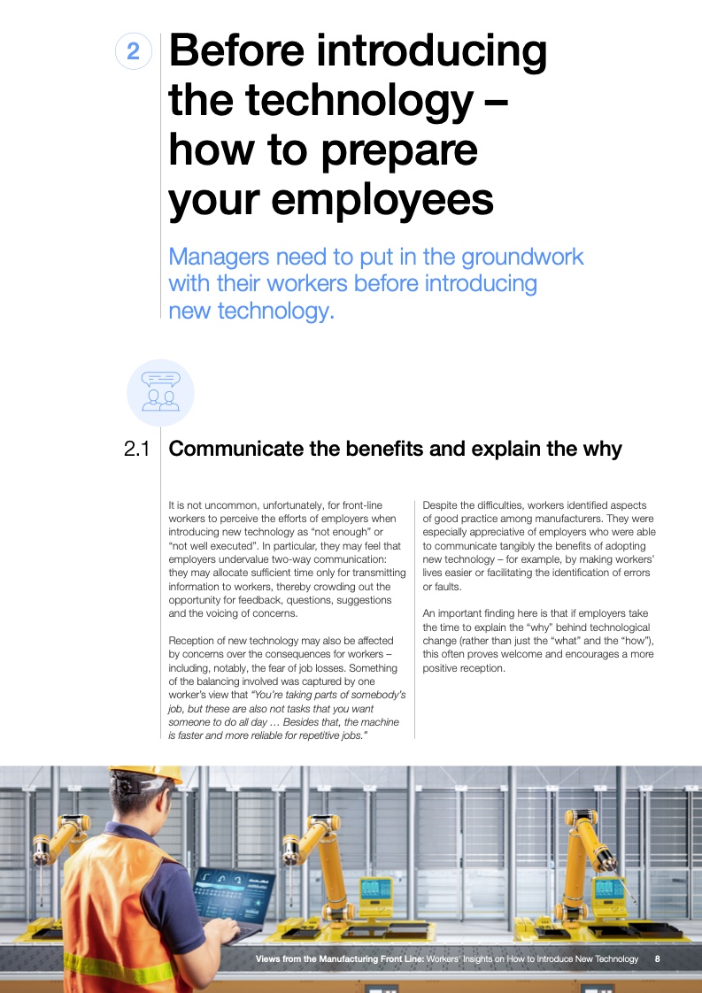 颠覆性技术可能会对工作需求产生根本性改变,促使劳动力必须进行技能提升和再培训。为了帮助人们更好地认识如何以人为本、可持续且有效地应用这些技术,世界经济论坛和剑桥大学采访了来自美国、欧洲和亚洲的一线工人。