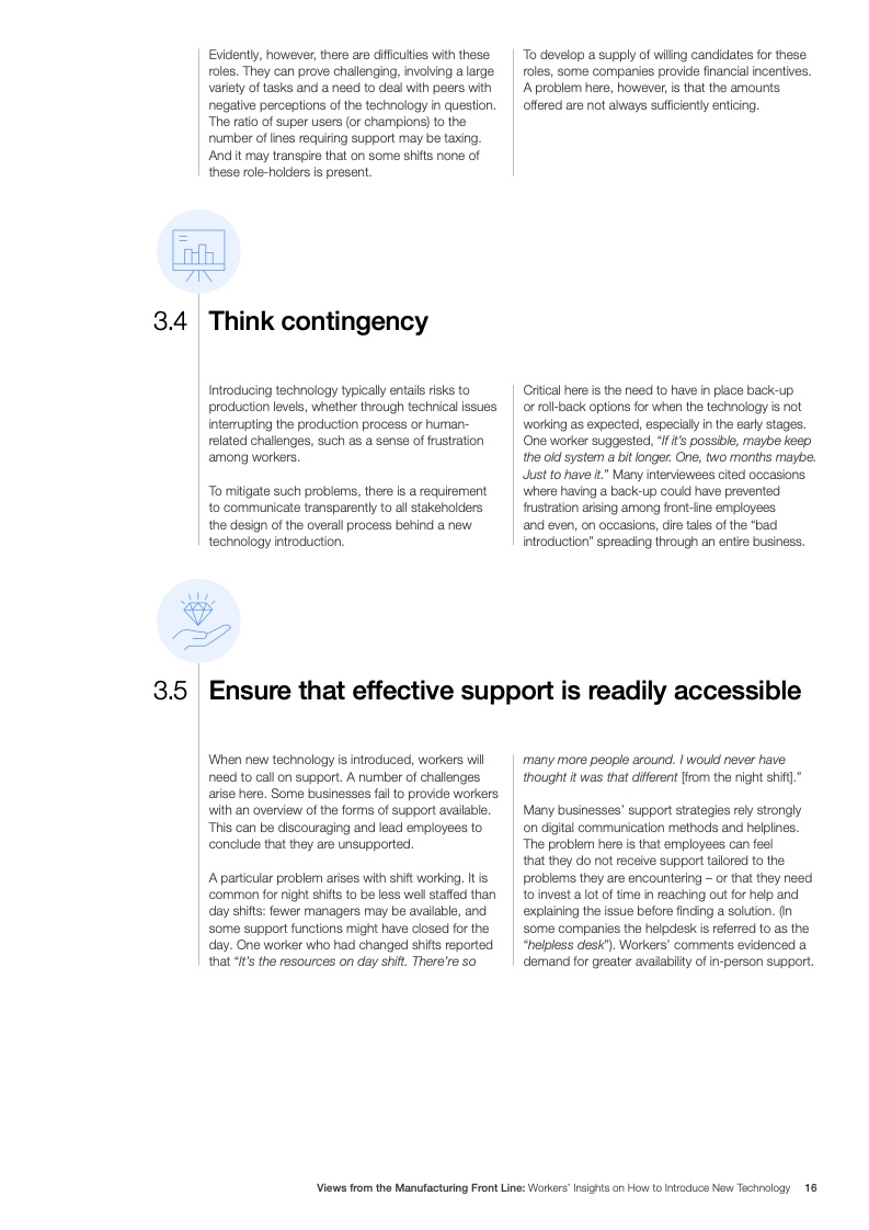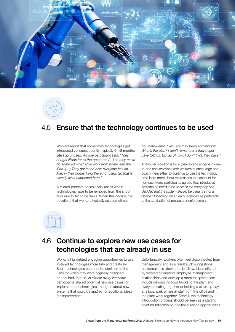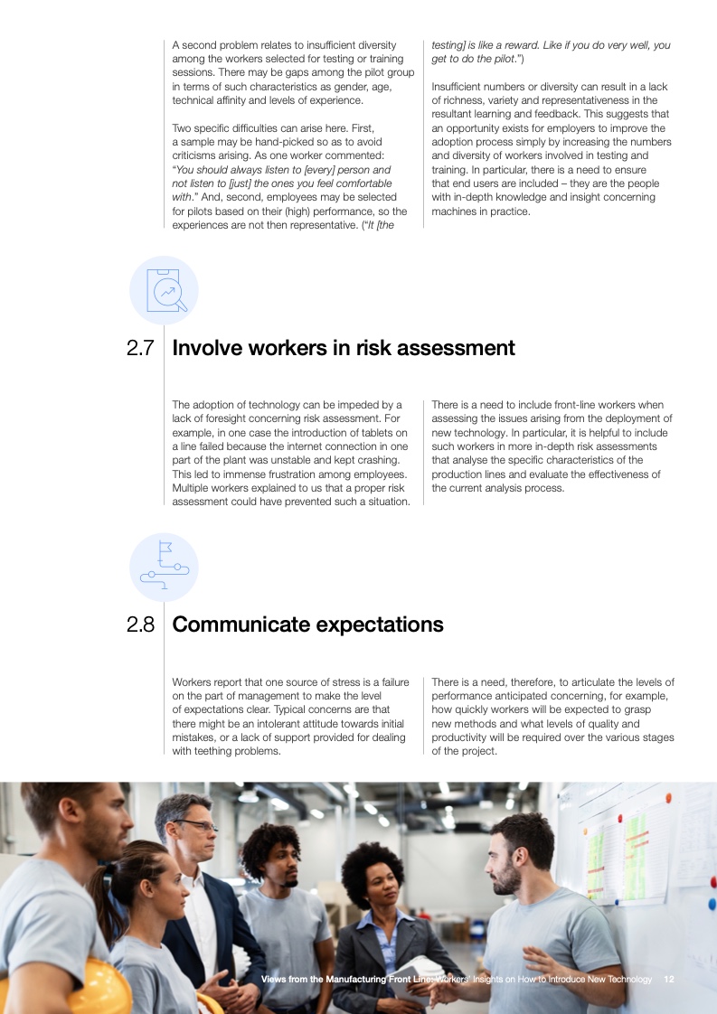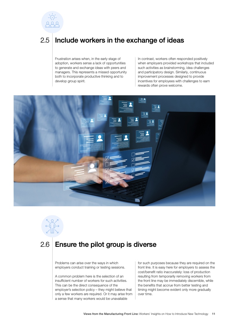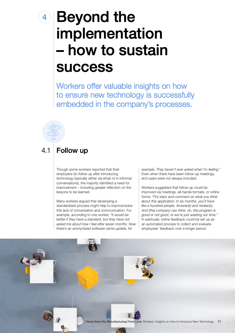 工人们还认为有必要参与技术相关的头脑风暴,并希望技术的直接使用者能够得到提供反馈的机会。