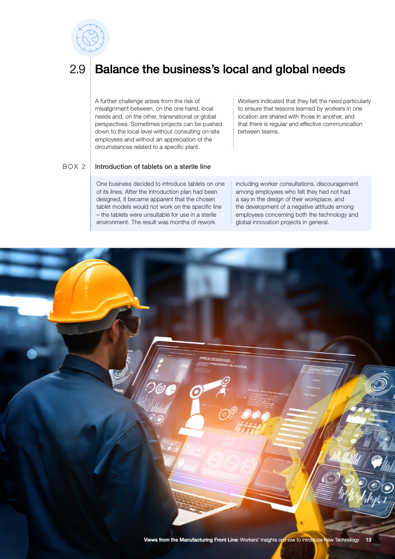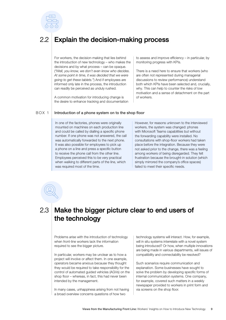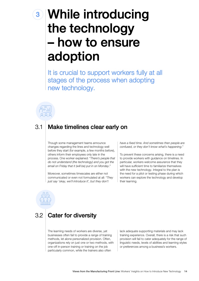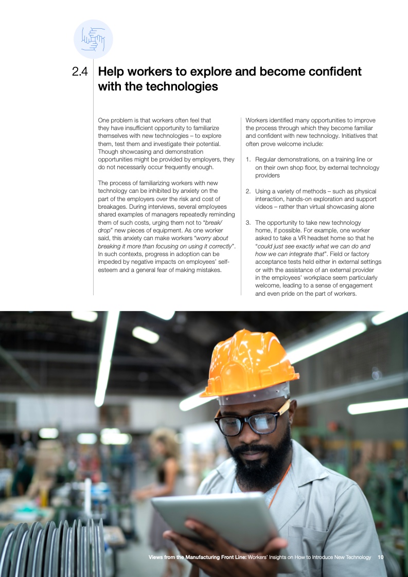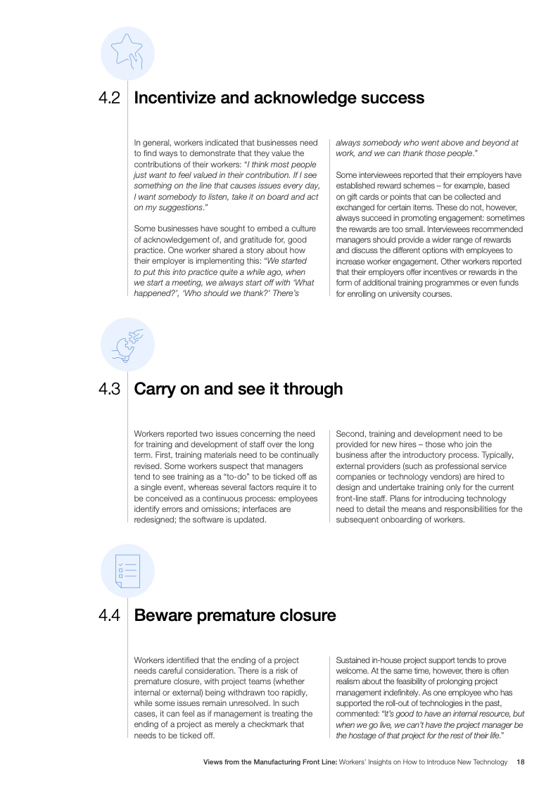 工人们还认为有必要参与技术相关的头脑风暴,并希望技术的直接使用者能够得到提供反馈的机会。