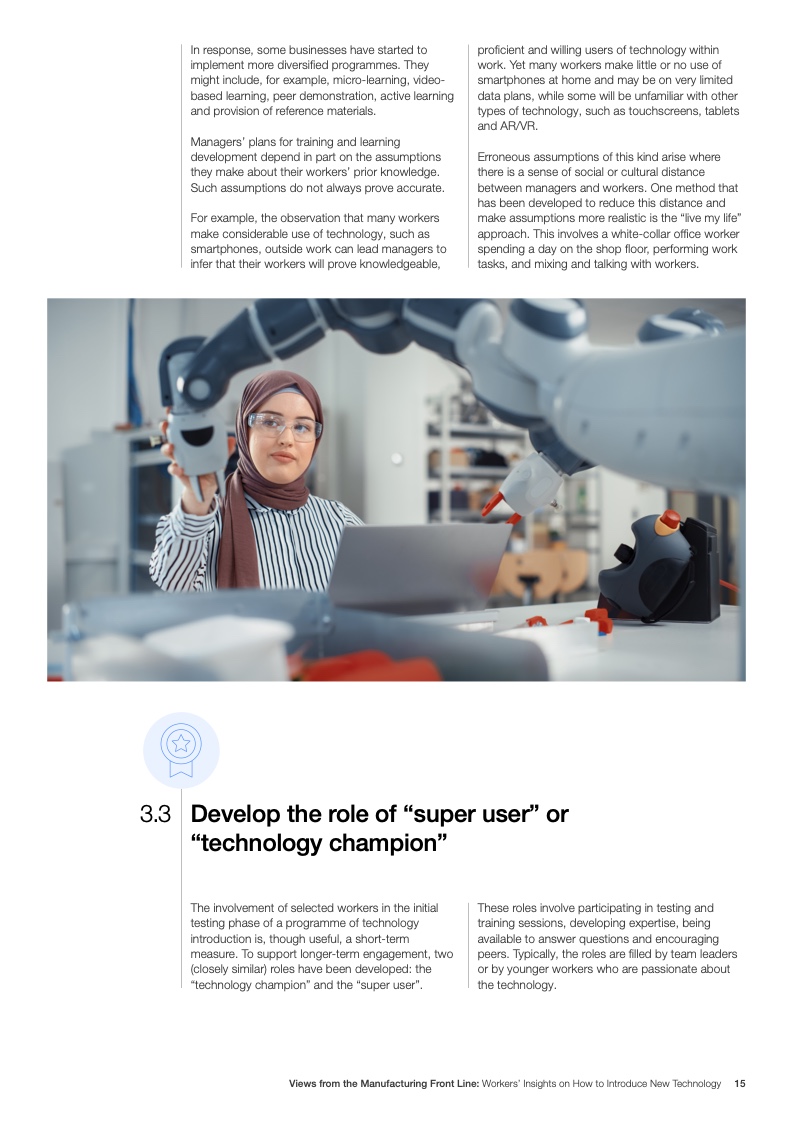 在引入新技术时,应给予工人支持,并考虑他们的学习需求和偏好。此外,设立“超级操作技术员”或“技术冠军”的称号可能有助于技术引入。