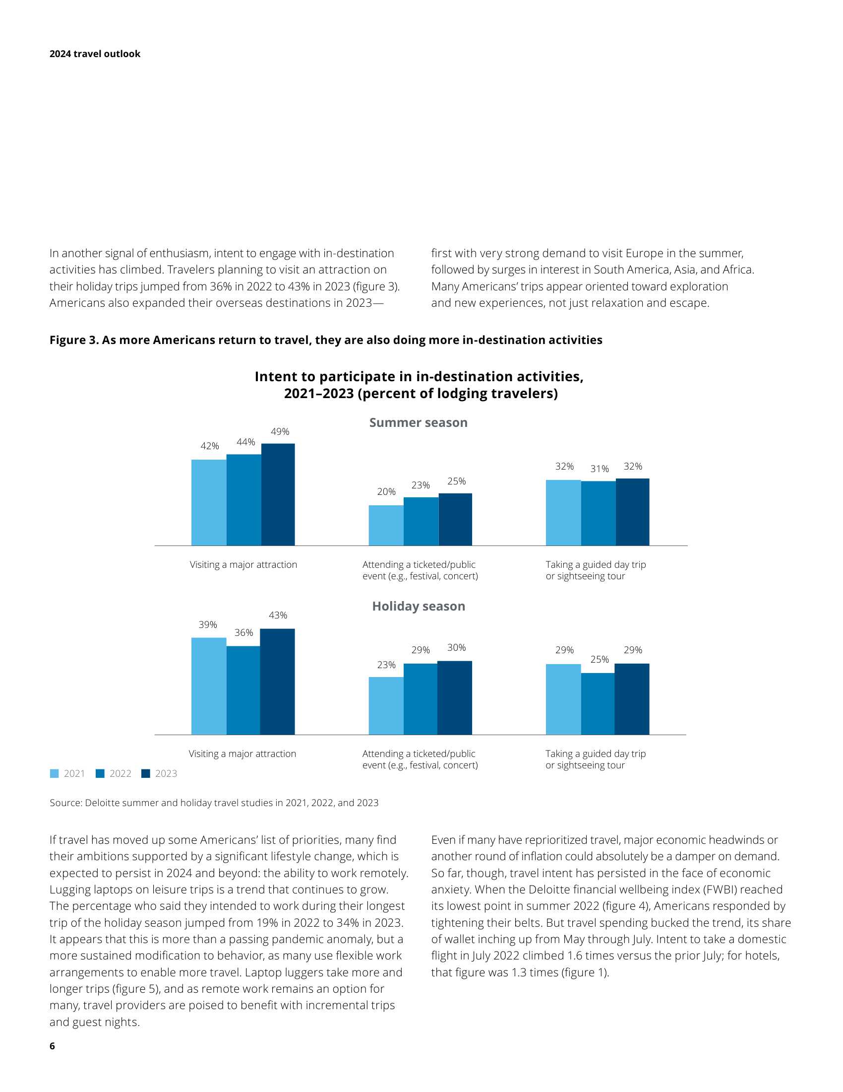 一个关键的信号是,消费者对度假和探险的重视程度很高,旅行在美国人的钱包中一直占据着一定的份额,即使在经济高度紧张的时候也是如此。对目的地活动的热情,对更多样化的目的地的兴趣日益增长,以及婴儿潮一代的大量回归,都是旅游的积极指标。工作场所的灵活性似乎有望进一步提振需求。