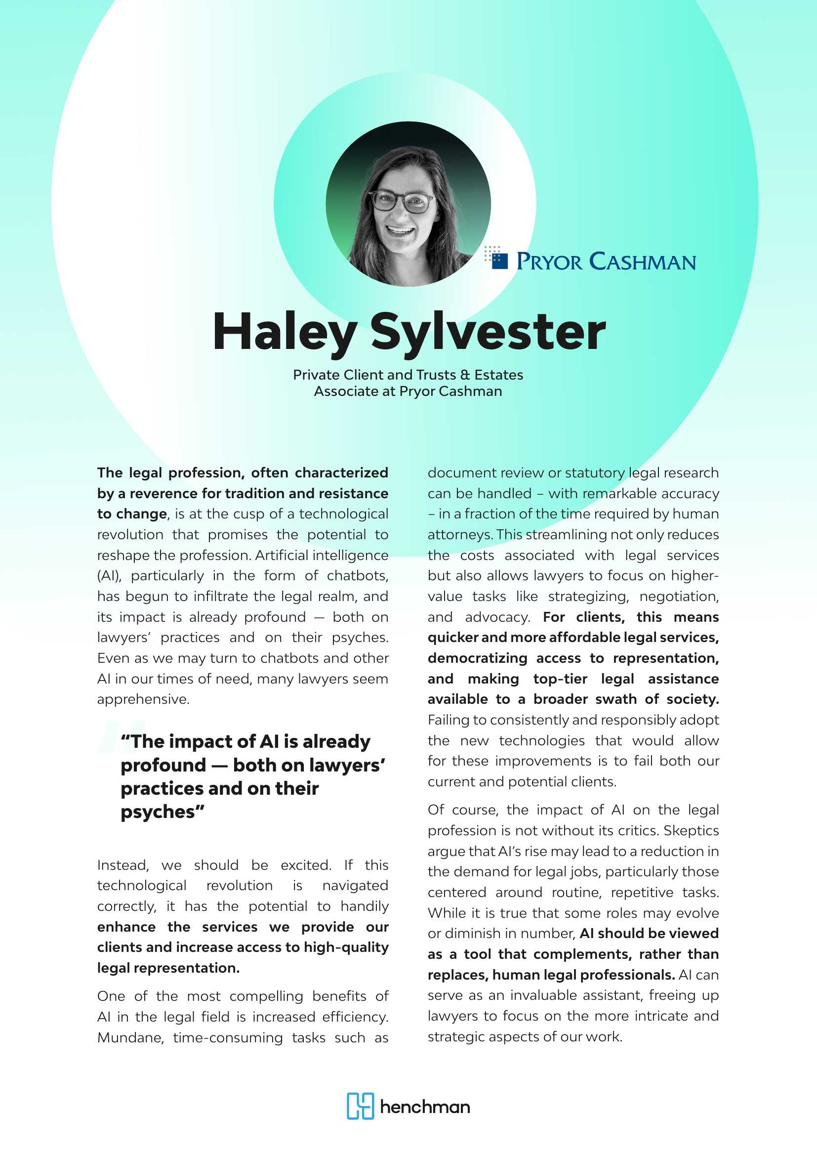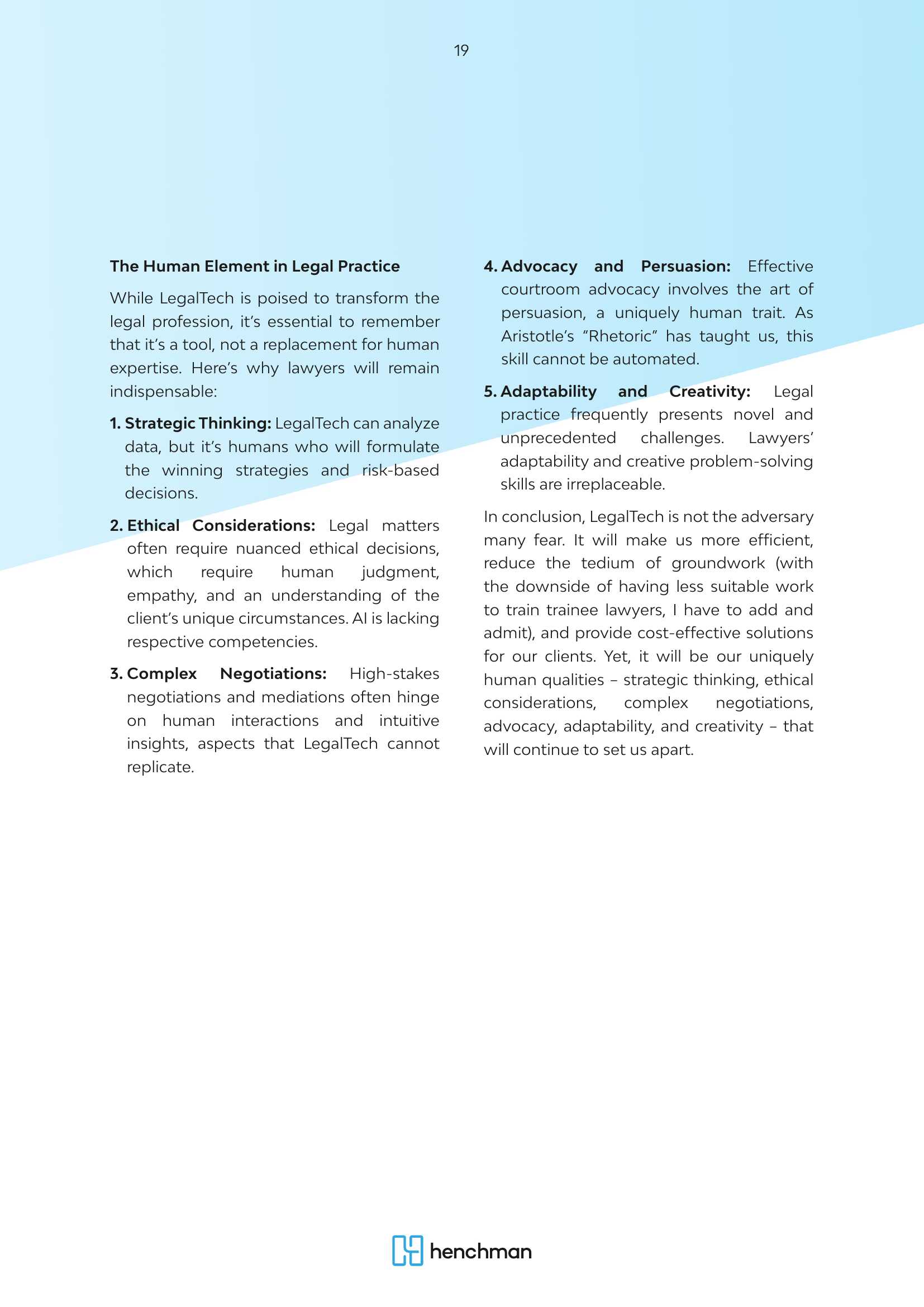 相反,我们应该感到兴奋。如果这场技术革命引导正确,它有可能轻松提高我们为客户提供的服务,并增加获得高质量法律代理的机会。