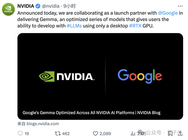 谷歌,昨夜刚发布的开源大模型Gemma就是英伟达的数据中心和PC AI平台上进行了优化。