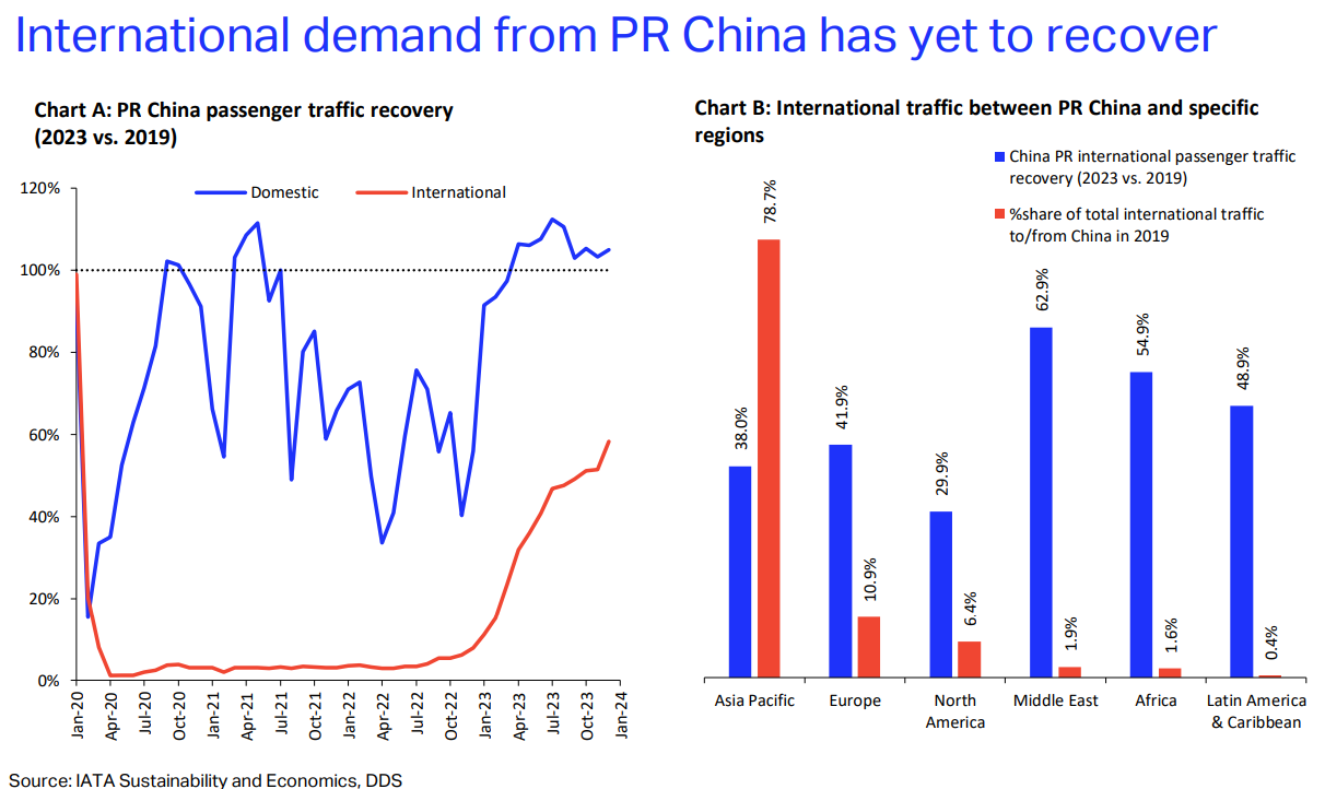 国际客流量增长的滞后不仅是由于外国游客人数减少,也是由于国民经济目前的状况,这与房地产危机和高失业率(尤其是年轻一代)有关。可以说,这种情况导致了人们对国内旅游目的地的偏好,而不是海外旅游。因此,许多国家的旅游业也受到了影响,特别是在亚太和欧洲,在大流行之前的十年里,中国消费者群体已成为这些国家的一大贡献者。未来一年,中国的国际客运量预计将进一步增长,为当前的地区和全球经济复苏做出更大贡献。