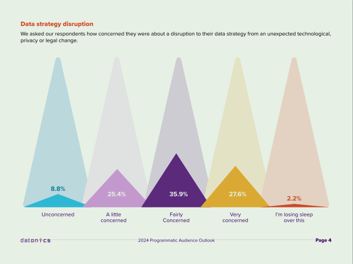 另一项研究发现,各大品牌正在测试各种各样的广告解决方案,为第三方cookie被弃用做准备,尽管似乎没有一个成为明显的领导者。缺乏准备是营销行业的一个主要问题,尽管有些人支持增加使用上下文数据。