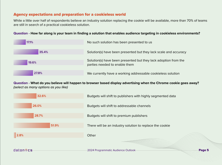 cookie的冬天来了,或者在某种程度上已经来了。但根据Datonics的研究,广告程序化购买团队成员仍然没有一个解决方案,可以在无cookie的环境中定向受众。