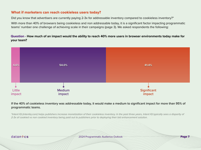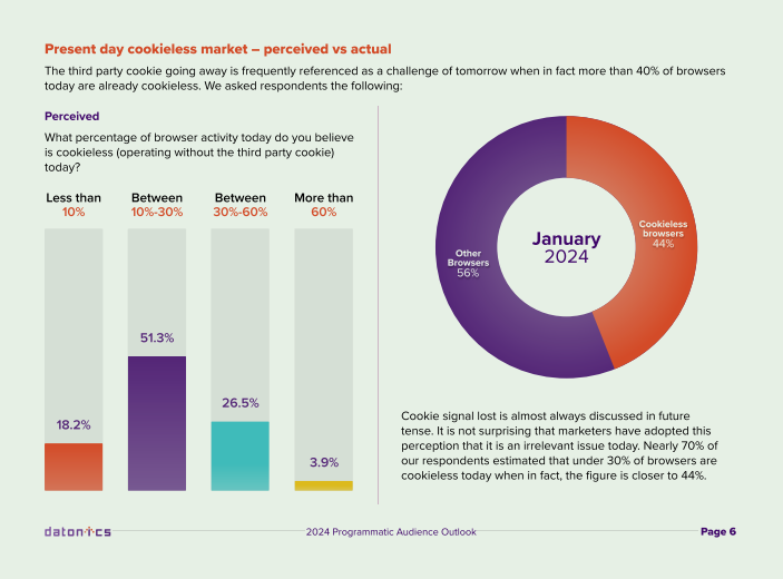 在对近200名广告程序化购买数据规划者、战略家和激活者进行的调查发现,目前只有28%的受访者拥有可寻址的无cookie解决方案,可以在无cookie环境中定向受众。