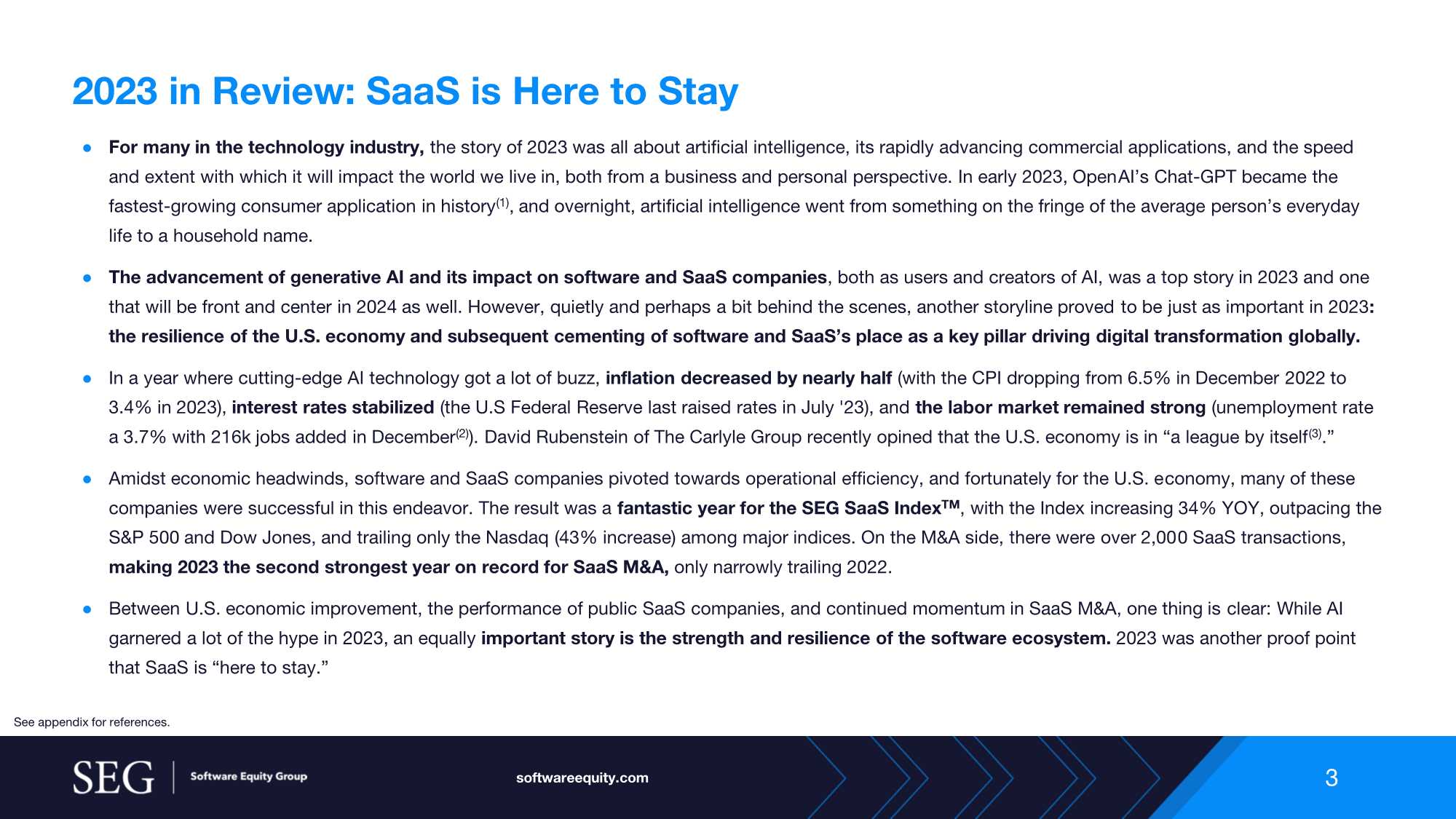 作为人工智能的用户和创造者,生成式人工智能的进步及其对软件和SaaS公司的影响是2023年的头条新闻,也是2024年的前沿和中心。