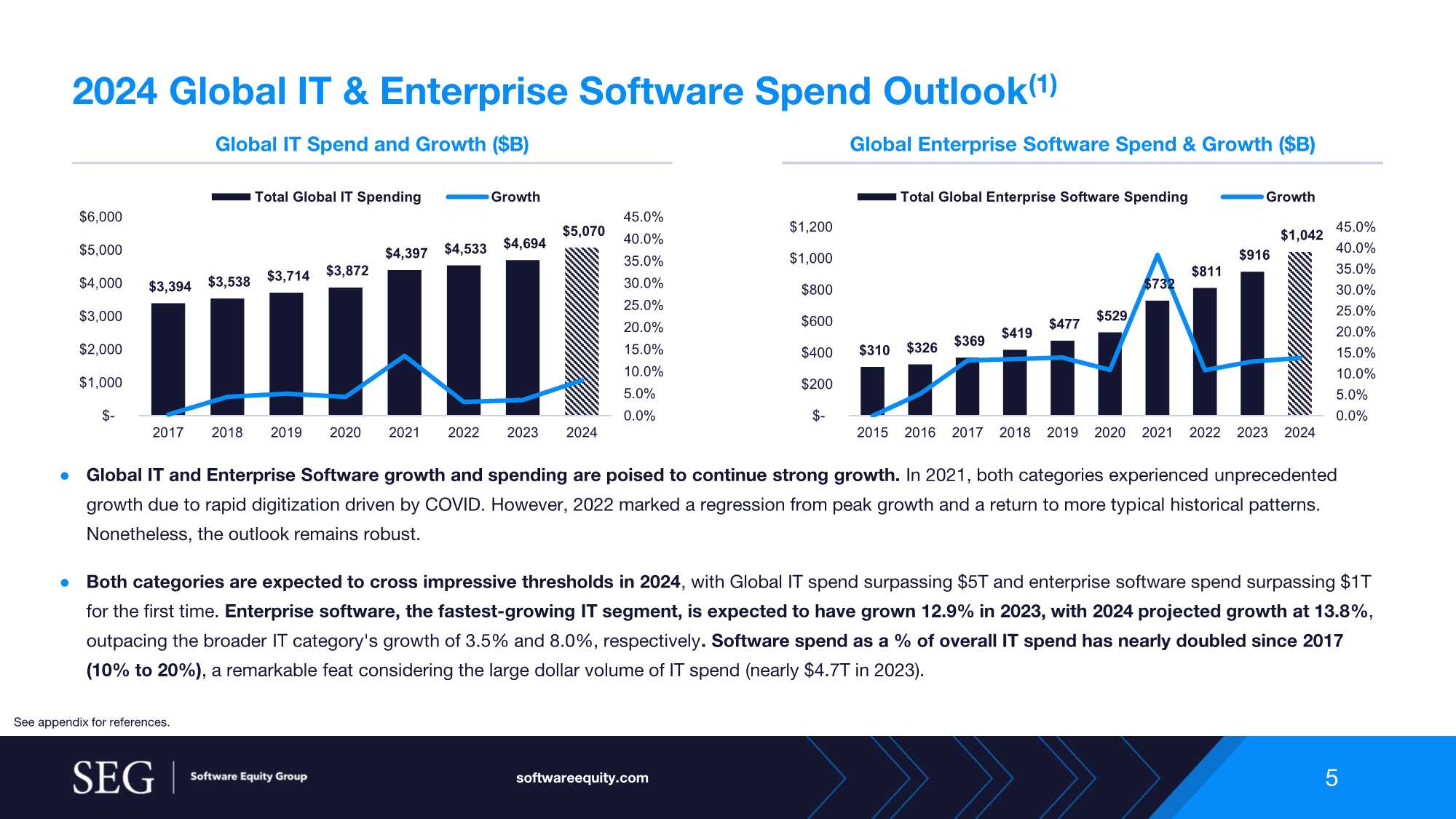 当我们进入2024年并分析经济将如何影响软件和SaaS并购以及上市公司业绩时,将重点关注五个关键领域:通货膨胀、利率、就业、增长和政治(包括国内和全球)。