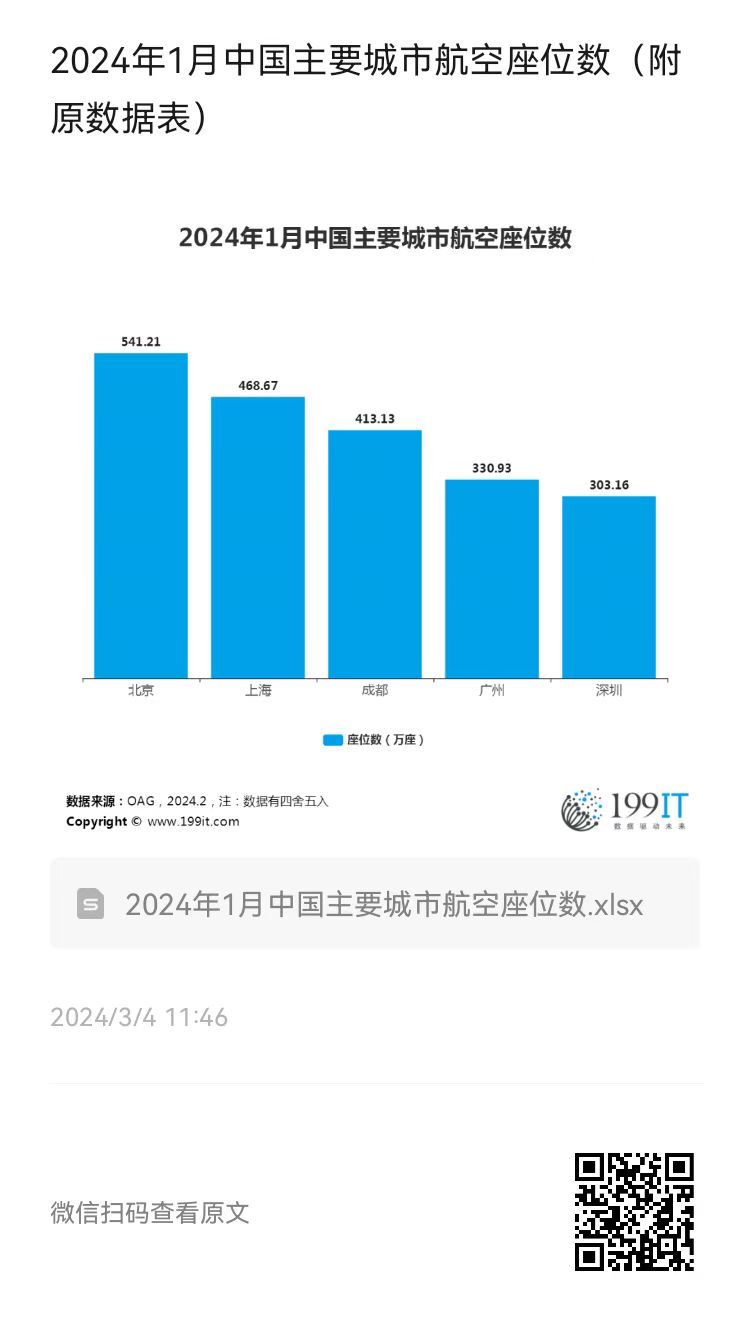 - 2024年1月中国主要省份航空座位数(附原数据表)