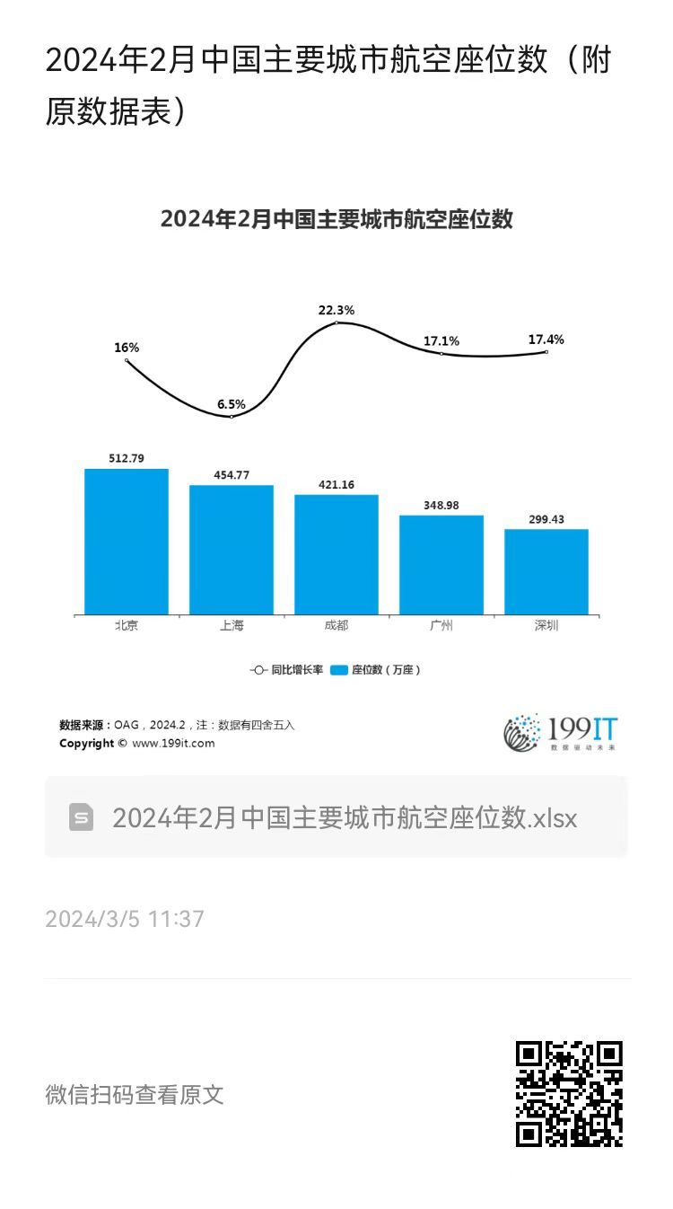 - 2024年3月中国主要城市航空座位数(附原数据表)