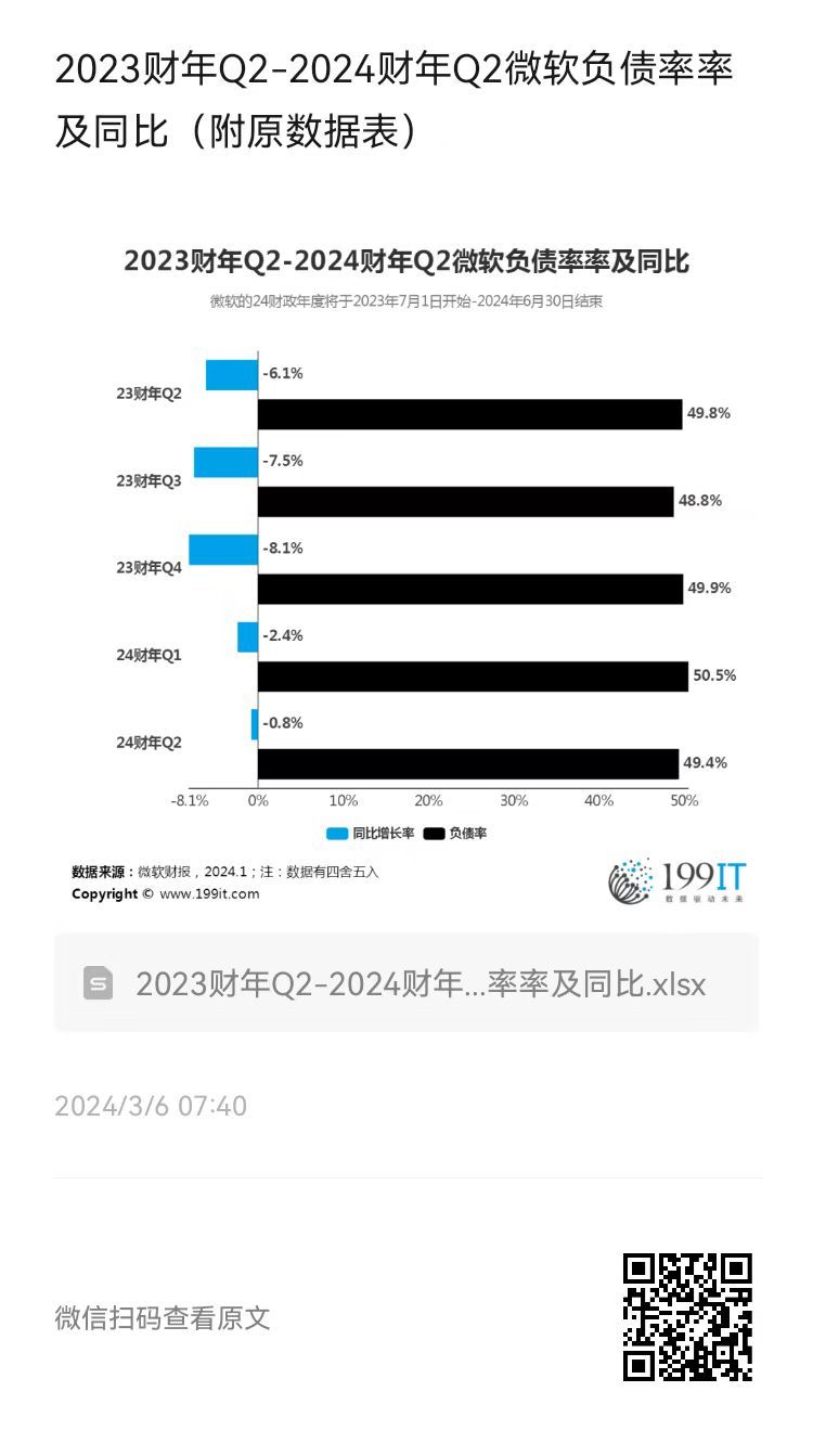 - 2024财年Q2-2025财年Q2微软负债率及同比(附原数据表)